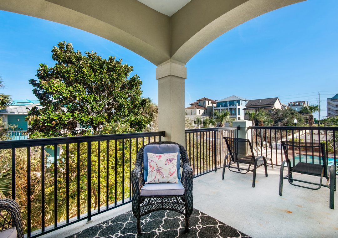 Miramar Beach Villa 101 is a stunning 4BR, 4BA townhome located steps from beautiful Miramar Beach. This spacious unit boasts partial gulf views and pool views, balcony access from all 3 floors, and sleeps 14 guests comfortably. As an added bonus, all bedrooms have balcony or patio access! On the 1st floor, there is a warm and inviting living space complete with a fireplace, updated kitchen, and dining area. There is also a master suite with a king bed, ensuite bathroom, and a private balcony. On the 2nd floor, you will find a guest bedroom with 2 queen beds and a full bath, a second guest room with a king bed and ensuite bathroom, and a twin over twin bunk bed in the hallway. The third floor has a guest bedroom with two queen beds. With beach access across the street, a great community pool, and flat-screen TVs in all bedrooms, this Miramar Beach Villa will make your next vacation one to remember!