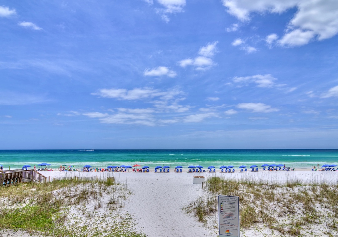 Perfect location for a beach getaway! Right across the street from the beach & easy to walk to. The private beach access was wonderful & so much less crowded than the public beach access. The unit was clean, updated and spacious. Host was very responsive. Would definitely recommend!- Reviewed On: 7/6/2023
