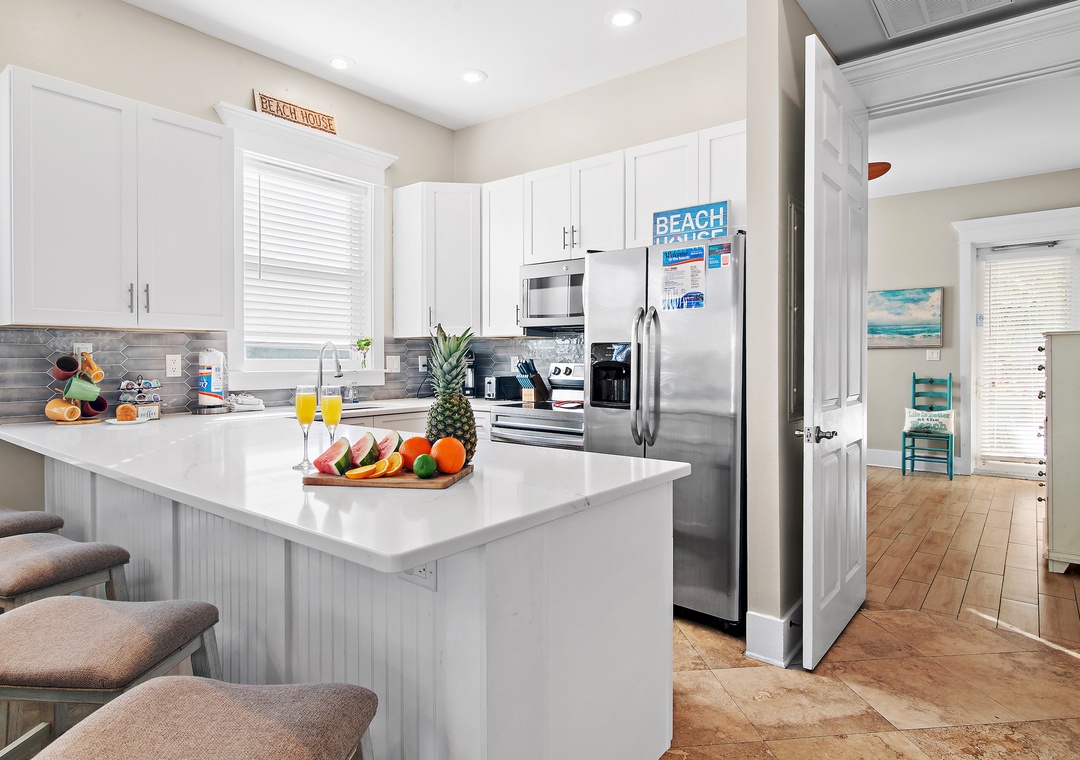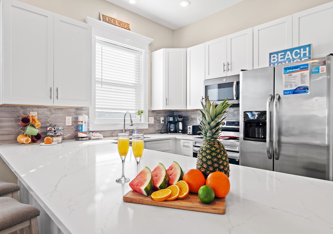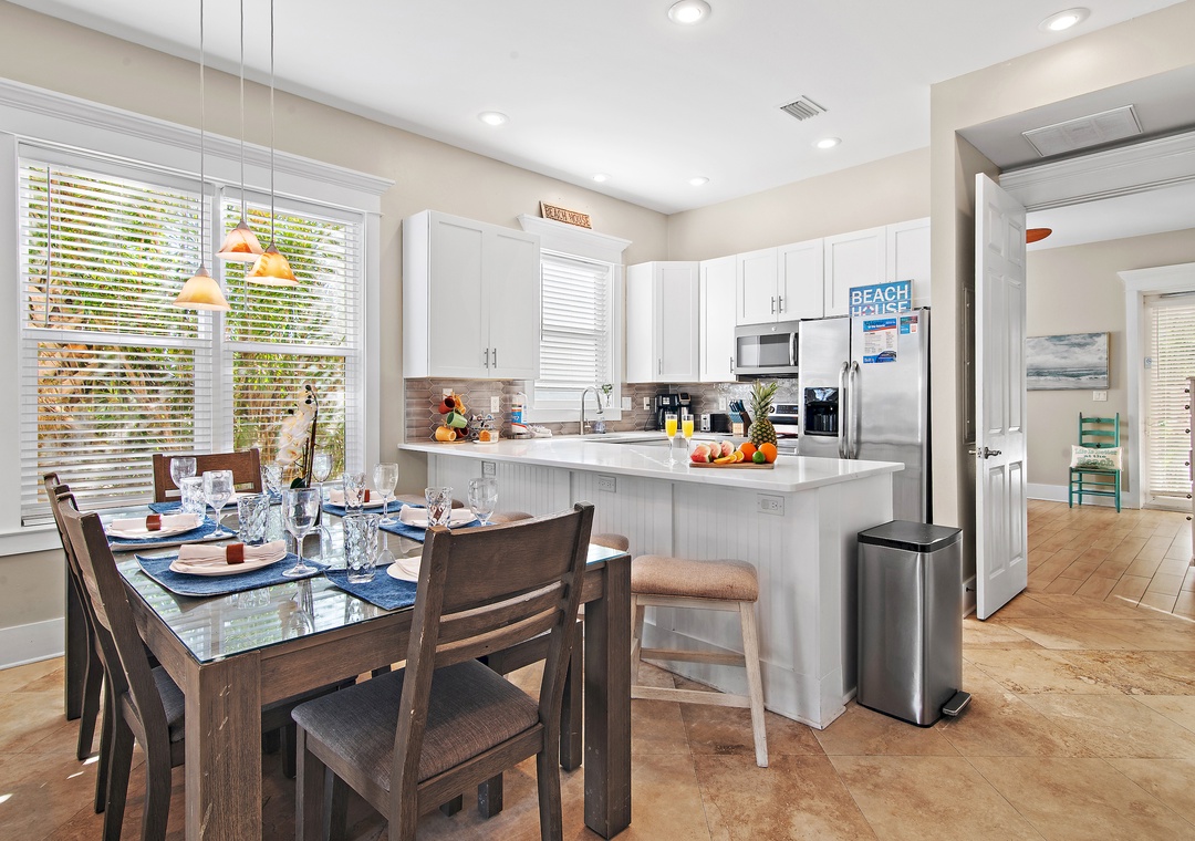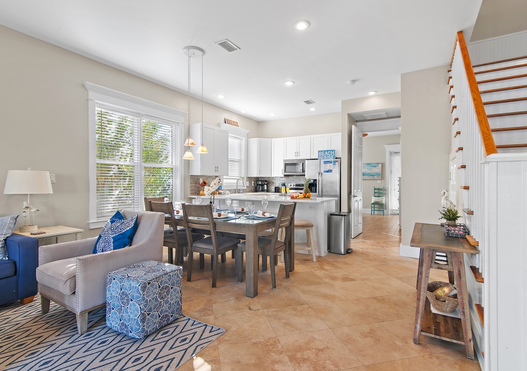 Welcome to Miramar Beach Villas 111, a newly renovated, bright, and cheerful 4-bedroom, 4-bath townhouse located in a gated, upscale community with a neighborhood pool and private beach access just steps away. This spacious three-story retreat features a convenient first-floor guest bedroom with a king bed and ensuite bath, along with a living room sleeper sofa. On the second floor, you'll find a luxurious master bedroom with a king bed, twin ottoman, and ensuite bath featuring a walk-in shower and soaking tub, plus a kid-friendly guest room with full-over-full and twin-over-twin bunks and a twin rollaway, as well as an additional hallway twin-over-twin bunk. The third floor hosts another elegant master suite with a king bed, twin ottoman, and a private bath with a walk-in shower and soaking tub. The fully equipped kitchen offers ample counter and cabinet space, perfect for family meals, and seasonal beach chair service is included for effortless days at the shore. With multiple balconies, generous indoor and outdoor gathering areas, and accommodations for up to 19 guests, this home is ideal for large families or groups. Create unforgettable memories at Miramar Beach Villa 111.