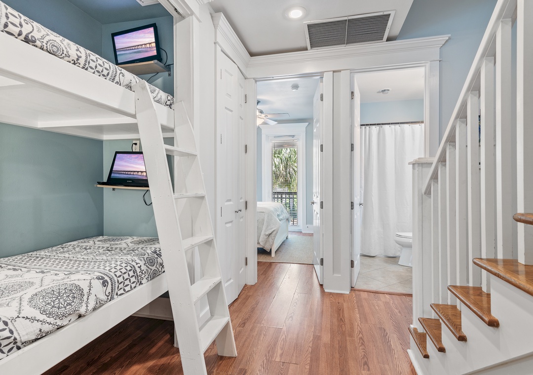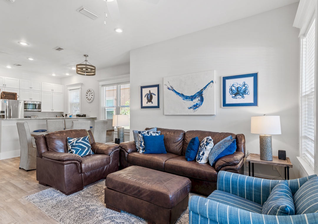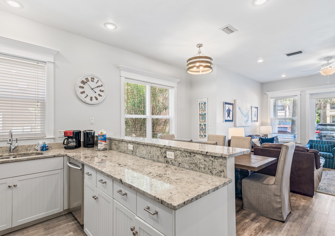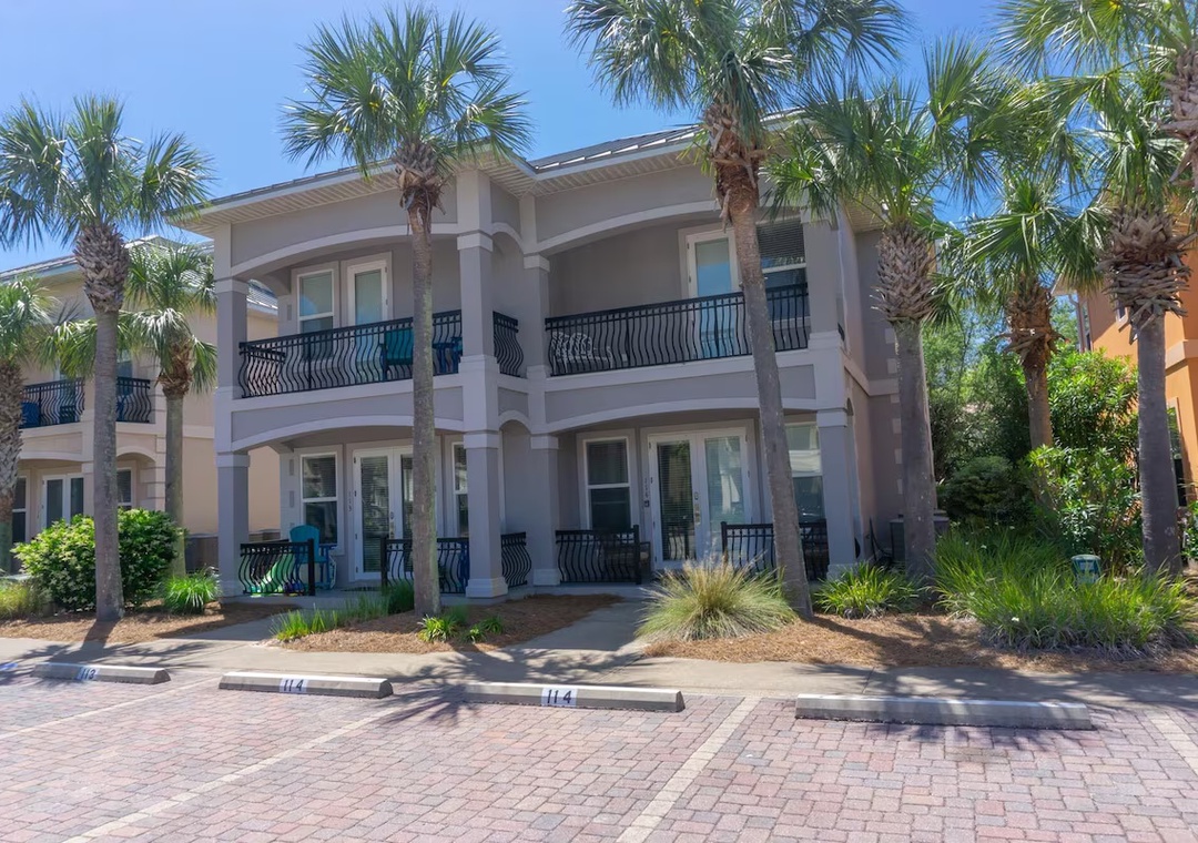 Welcome to Miramar Beach Villas 114 – Beach Therapy, a spacious and stylish 4-bedroom, 4-bath townhouse located in a gated, upscale community just steps from private beach access. This beautifully designed retreat comfortably sleeps up to 12 guests with two luxurious king master suites, one queen bedroom, a fourth bedroom with both a king and queen bed, and a cozy twin-over-twin hallway bunk—perfect for the kids. Inside, you'll find an open floor plan with a newly furnished living room and a modern, fully equipped kitchen featuring ample counter space and a large bar for casual dining. Each bedroom has its own private balcony or deck, offering peaceful spots to relax and soak in the coastal breeze. For your convenience and enjoyment, seasonal beach chair service is included, so you can head straight to the shore and start relaxing. Smart TVs with streaming services (no cable) are available throughout the home, making entertainment effortless. With a fantastic layout, thoughtful amenities, and access to a beautiful community pool, Beach Therapy is your ideal Miramar Beach getaway.