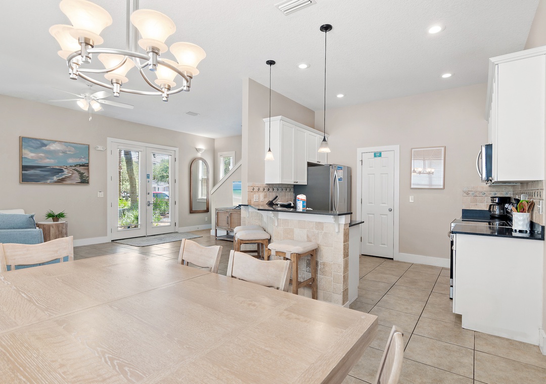 FANTASTIC location (directly across main road from private beach entrance). CLEAN house. Looks just like the pics. The management company gave inaccurate info twice that resulted in additional trips to stores (in traffic time), but they were responsive quickly & apologetic for the misinformation. There were damaged tiles downstairs & unpainted dry wall repairs, but they did not impair our enjoyment. Otherwise the house, grounds, and neighborhood is very well maintained and felt safe. The door to the pantry in the kitchen is locked & inaccessible and made it difficult to find space for food for our week’s stay. But the fridge is huge & dishwasher worked great & the cabinets were well stocked. We had 4 adults & 4 kids (ages 11-14) and had plenty of room & loved that each room had its own bathroom with a shower. The heated pool & hot tub were great bonuses! The very short walk to the beach in addition to being close to so much made for a great vacation. We would definitely stay again!!!- Reviewed On: 3/21/2025