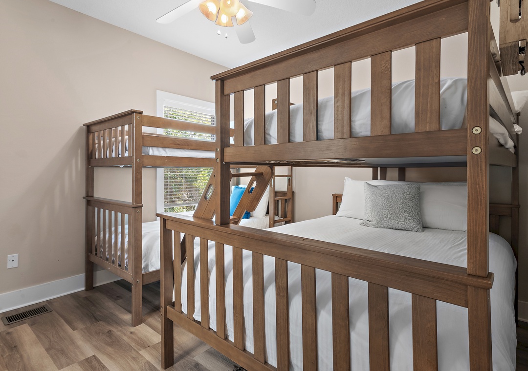 Welcome to this beautiful 3-bedroom 3-bathroom Cottage Home 500ft from gated beach access in Miramar Beach! This beautiful home offers plenty of open space and a well-equipped kitchen that you will have everything you need to cook your dinners. Enjoy your morning coffee on your balcony taking in the serenity. The first-floor bedroom has a king bed. Upstairs you’ll find the spacious king master bedroom with balcony access and en suite bath. There’s also a bunk room, with 1 twin-over-twin and 1 twin-over queen bunk, and en suite bath on this floor Take a short stroll to the gated beach access, splash around in the community pool, or chill on the wraparound balcony! You’ll have everything you need and more at Miramar Manor!