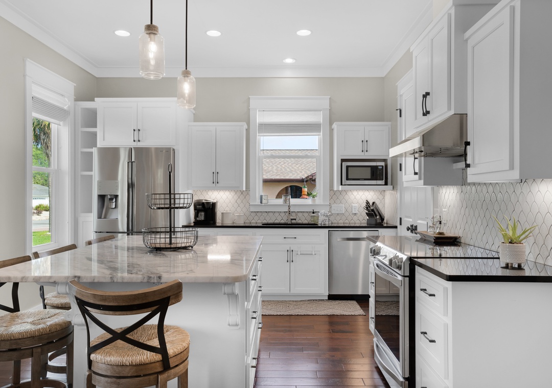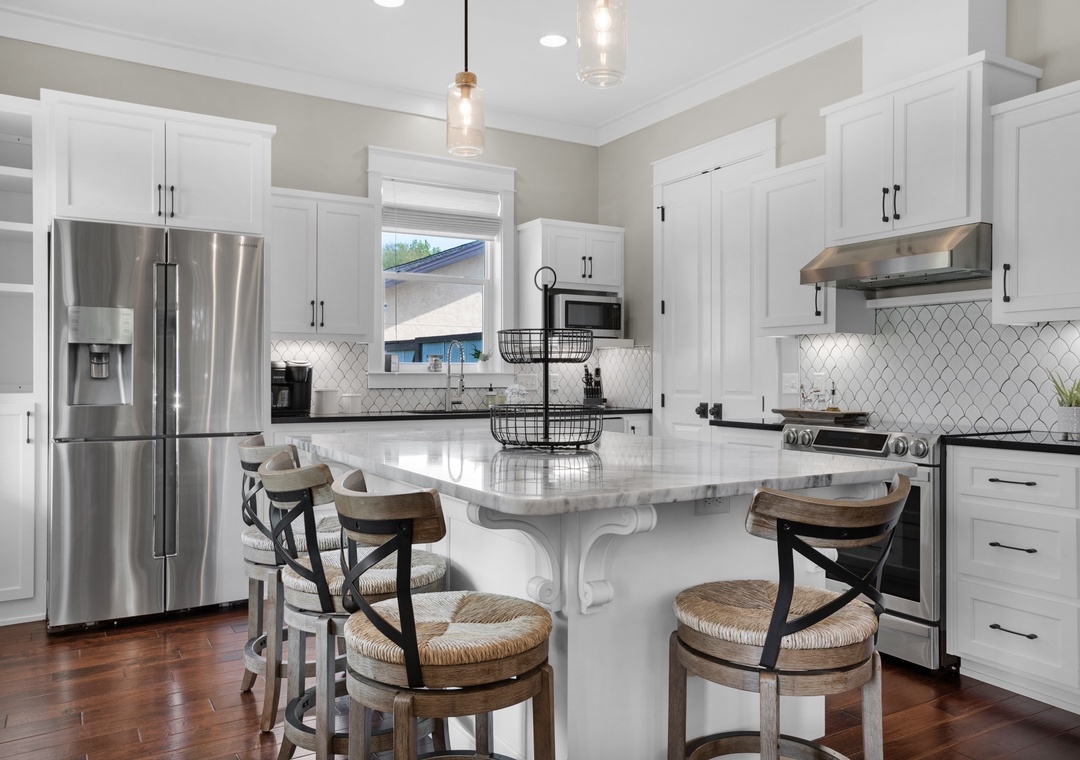 Your vacation awaits at Moonlight Cottage! This stunning custom-built 4-bedroom, 2.5-bathroom home is a must-see. Located in the sought-after west end neighborhood in Panama City Beach, just steps from the world's most beautiful beaches, Moonlight Cottage boasts a gourmet kitchen with a large island, granite countertops, and all stainless steel appliances. The spacious, open-concept layout features hardwood floors, 10-foot ceilings, and custom trim work throughout. The master suite offers a king bed and a luxurious en-suite bathroom with a double sink vanity and a large walk-in shower. There is also a daybed and twin trundle in the guest room on the first floor, upstairs you'll find two queen bedrooms allowing for sleep accommodations for up to 8 people. Make memories in the spacious backyard which features a beautiful custom heated pool with a paver deck, perfect for hosting family and friends. Don't miss this once-in-a-lifetime opportunity to own a piece of paradise!