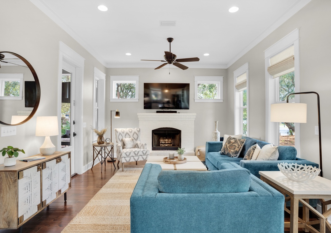 This home is absolutely gorgeous! We have been coming to 30a for several years and we wanted to get away from the crowd this time. This house was perfect! All the benefits of the emerald coast, golf cart, private pool, gorgeous home…in a very peaceful neighborhood. We went to 30a one day for some specific restaurants and that was enough! I cannot recommend this home enough. It’s conveniently located by 2 grocery stores and has a great grill set up. One of our favorites was dinner on the side porch.- Reviewed On: 5/19/2023