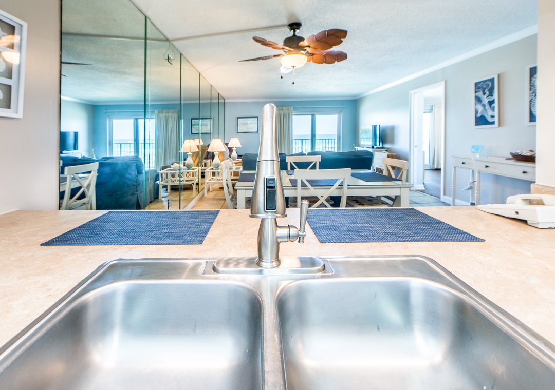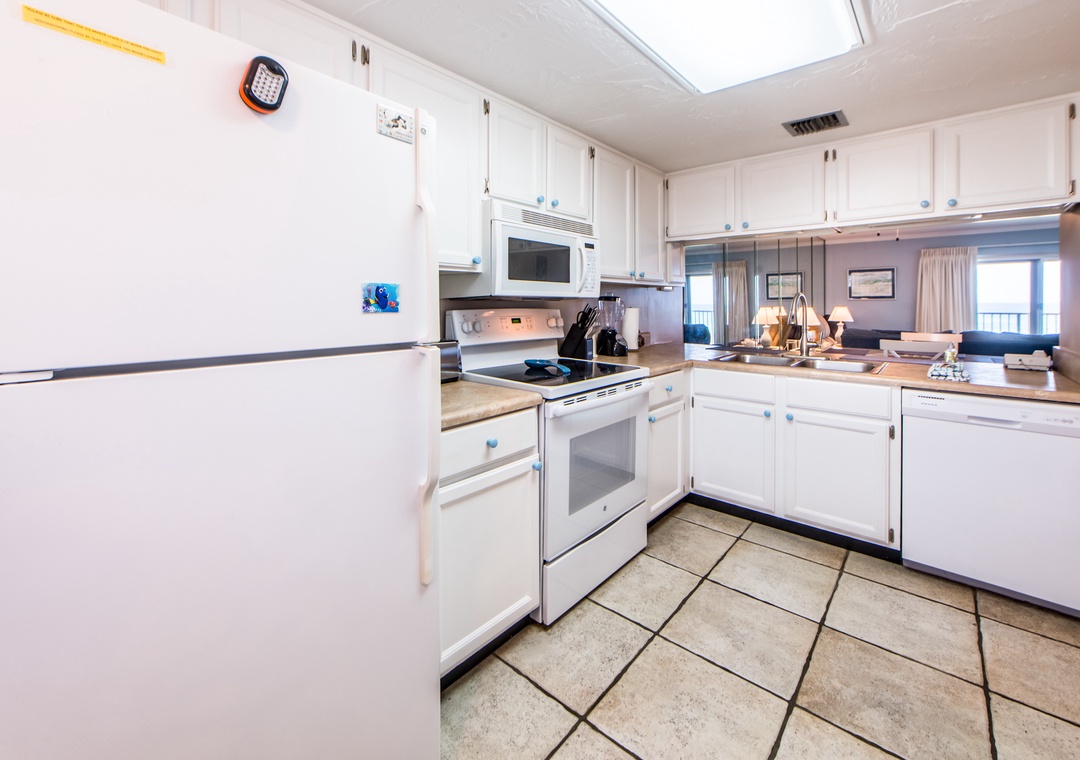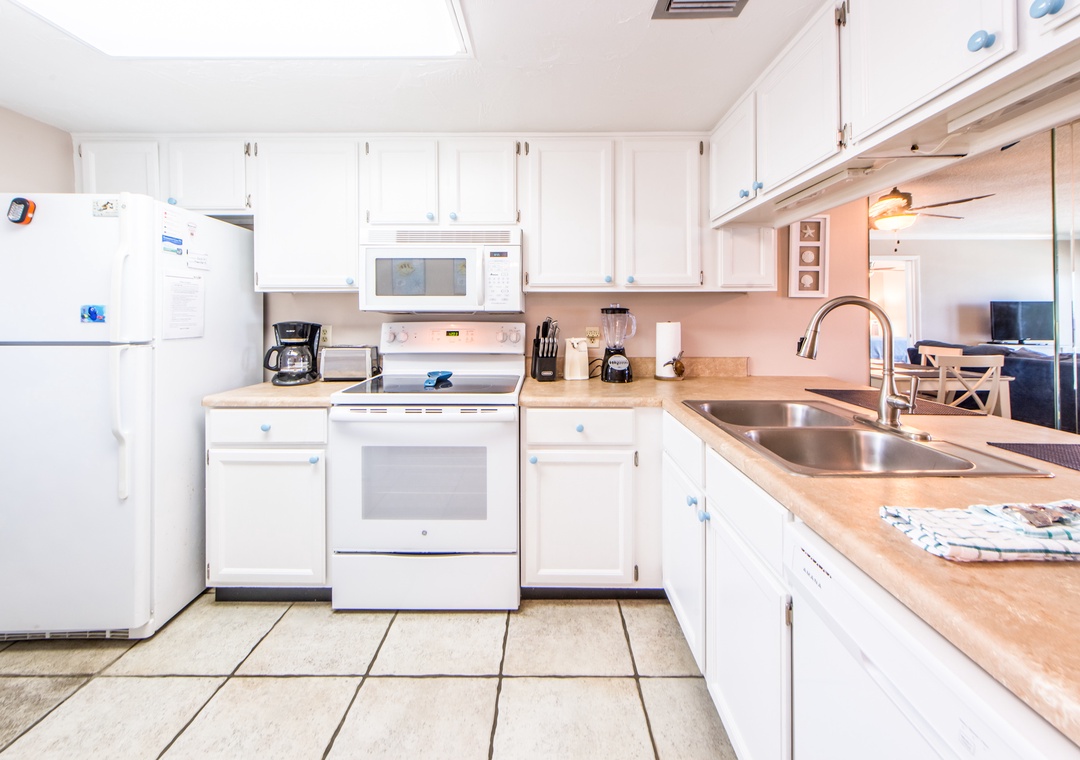 Hi Sheryl, thank you for your feedback on your stay at this lovely condo. We're happy to hear you found the kitchen well stocked and we hope you enjoyed the Gulf views throughout. Thank you again for your feedback and thank you for staying with Real Joy!Real Joy staff