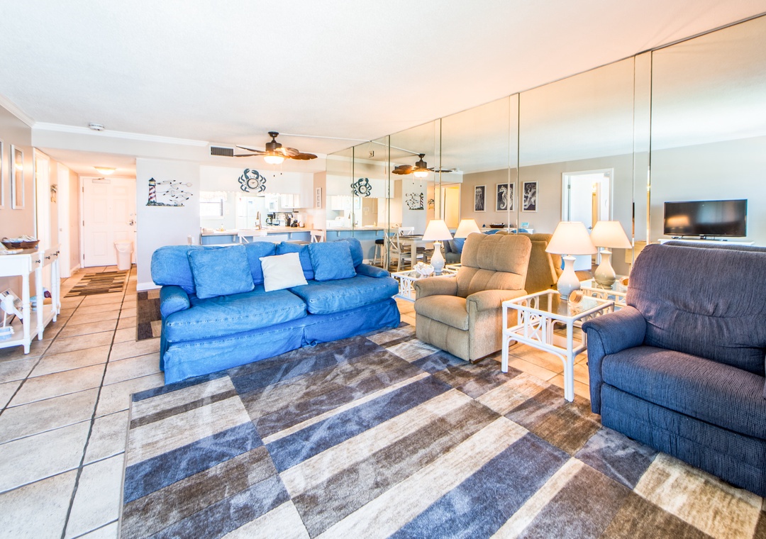 The place was perfect for our family. We worried about going in March for fear of a lot of college partiers (good for them, not so good for us, lol) but we were truly on the best (quiet) end of PC. There were a few items in the condo that are probably in need of being replaced. Bedspreads and pans, for sure. But I cannot say enough about location, view, amenities and traffic in our particular area! The blue notebook should probably also be updated to include the best restaurants/pricing/delivery. Overall we would definitely book again!!- Reviewed On: 3/27/2023