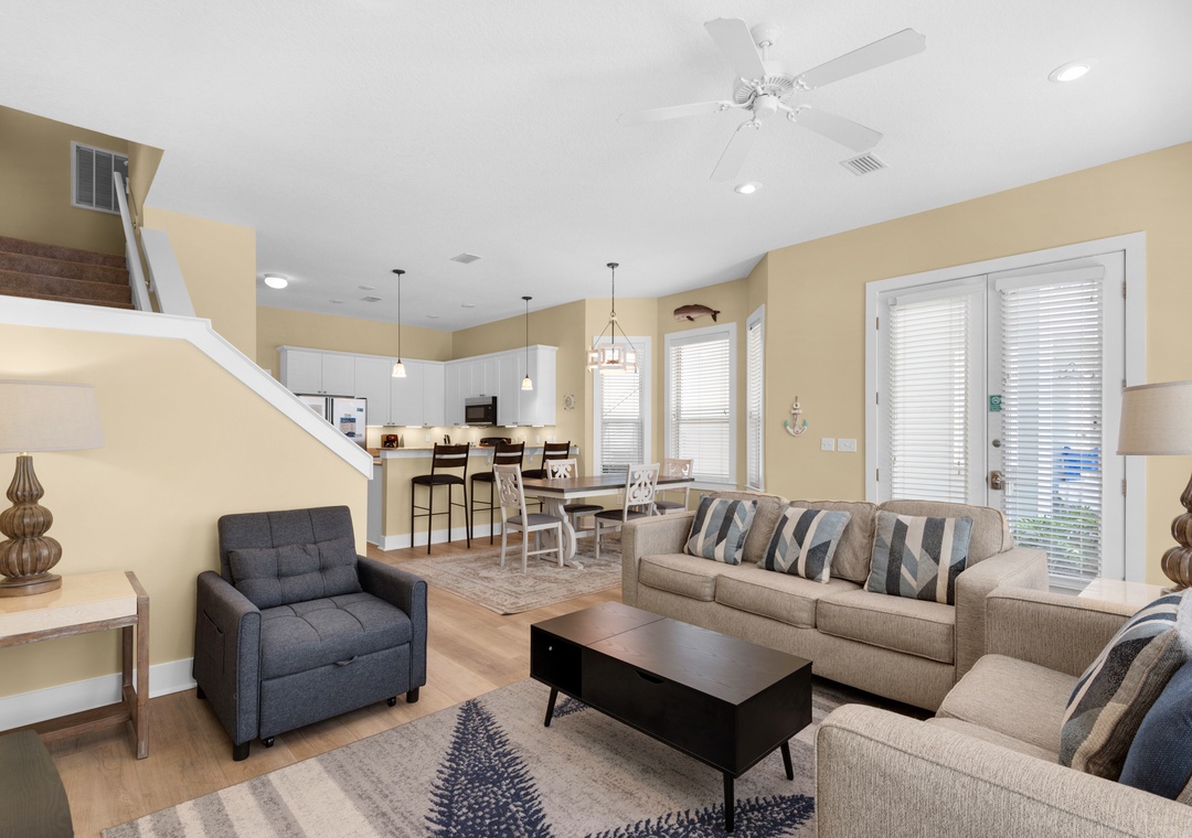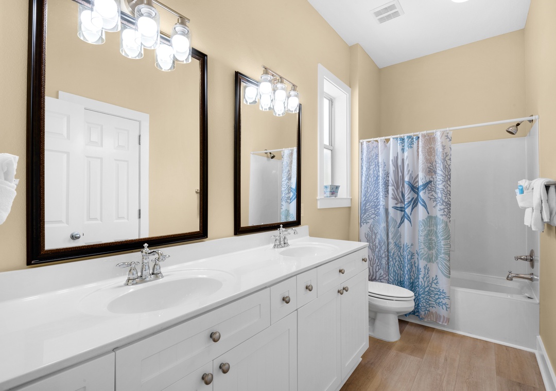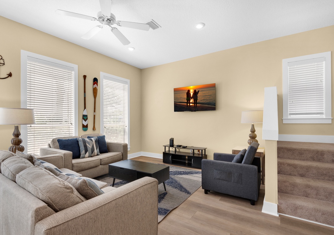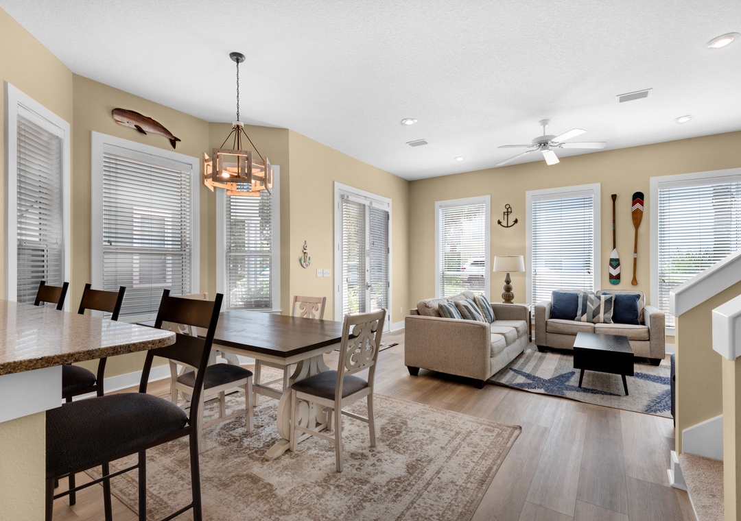 My Blue Heaven is a charming 3BR/3BA home about 500ft from gated beach access in Miramar Beach! This beautiful home features a spacious open floor plan with multiple flat screen TVs, a full kitchen with Silestone counters and stainless-steel appliances, plus a huge wraparound balcony for enjoying the salty air! The first floor bedroom has a queen bed, a twin daybed, and attached bathroom. Upstairs you’ll find the spacious king master bedroom with balcony access, a large TV, and en suite bath. There’s also a bedroom with a queen bed, twin bunks, and a twin trundle on the second floor. Take a short stroll to the gated beach access, splash around in the community pool, or chill on the wraparound balcony! You’ll have everything you need and more at My Blue Heaven!