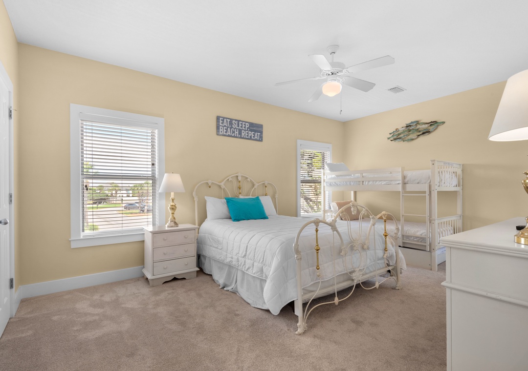 Guest Bedroom: Queen Bed, Twin Bunks + Trundle
