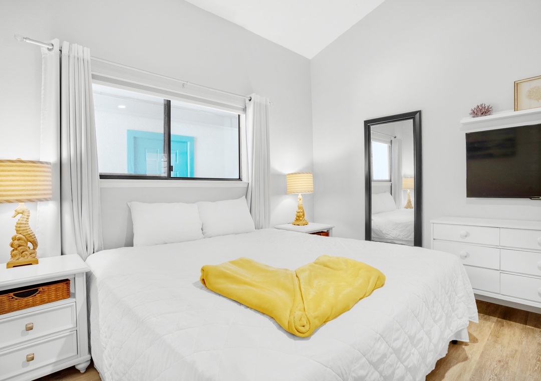 Beautiful, clean and bright condo! Kitchen stocked with basics. Great location, you are on the beach in minutes. We loved the large open balcony and never tired of looking out at the water, hearing the waves and watching the sunsets. Master bed was so comfortable!! Room has been updated from current pic with king mattress now on furniture- headboard and drawers underneath. Also, balcony furniture is now a high top table and chairs. Steps to loft are steep but manageable with the railing. All concerns and questions were addressed immediately. Would stay here again!- Reviewed On: 3/10/2025