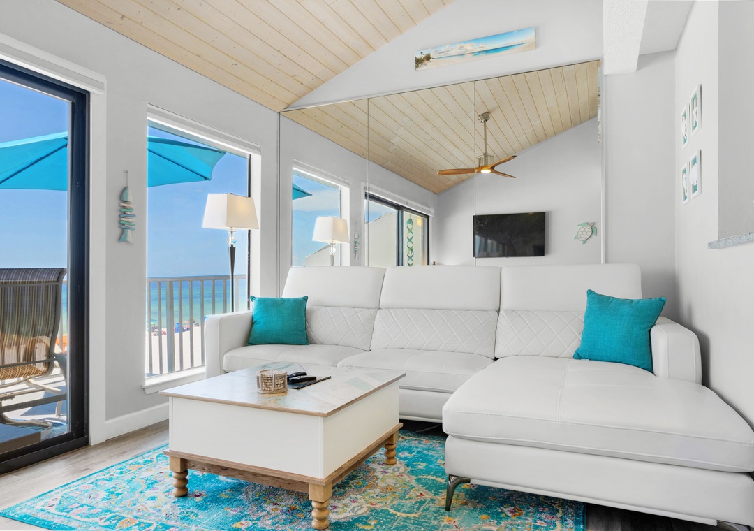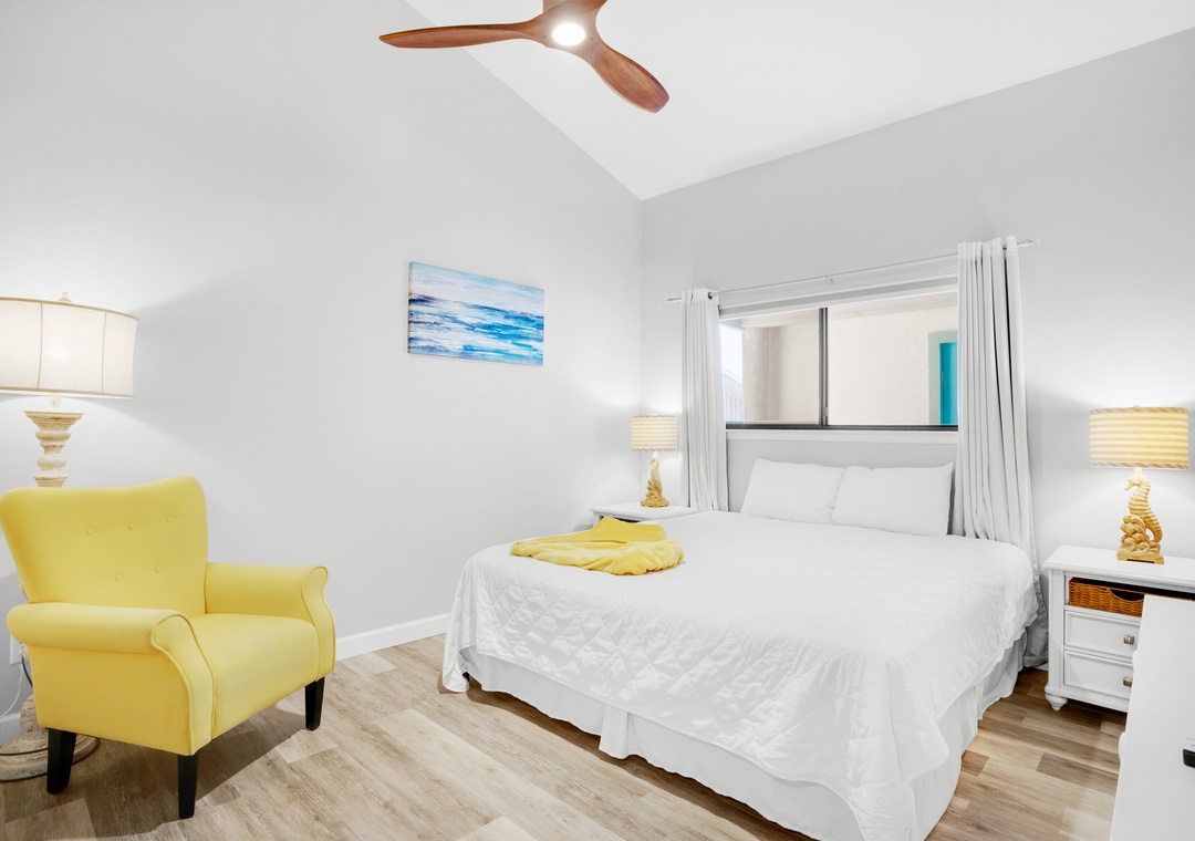 Nautical Watch A-11 is a family-friendly, 2-story condo with over 500 feet of beautiful private beach just steps away! Located on the 3rd floor, these 2-bedroom, 2-bath condos can sleep up to 4 guests comfortably. Relax with a king bed in the master and a queen bed in the loft area. Both bathrooms provide hair dryers and a starter pack of essentials to make your stay feel more like home. Recent updates include luxury plank flooring throughout, vaulted wood plank ceiling in the living area, stainless steel appliances, convertible dining and coffee tables, and a fully equipped kitchen with granite countertops! With floor-to-ceiling windows and an oversized private balcony overlooking the clear emerald, green water of the Gulf of Mexico, you are sure to see the most spectacular sunset views. Check out why Nautical Watch A-11 is a family favorite!
