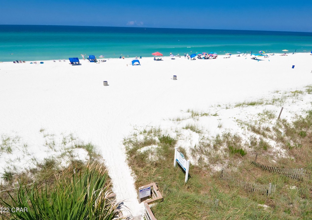The beach is wide and deep and reminds one of "old Florida". Less than a mile away is gorgeous St. Andrews State Park. Grand Lagoon touches the park to the north and to the south, the beautiful Gulf. Swimming and fishing are great at the park without the large crowds!