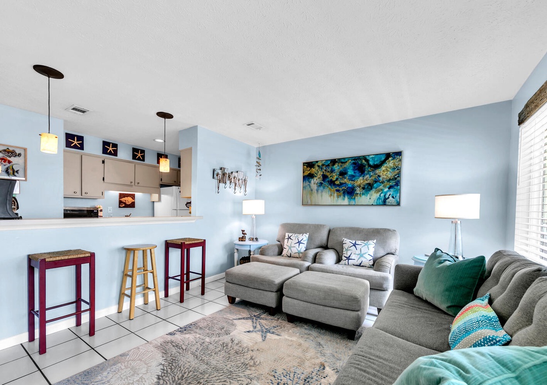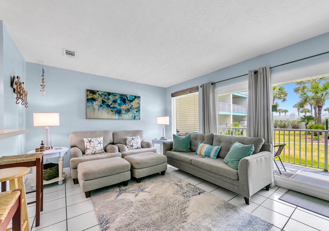 Welcome to your getaway at Nautical Watch E-3, a low-rise 1st-floor condo with over 500 feet of private beach just steps away! Located on the east side of Panama City Beach, this cozy, one-bedroom, one-bathroom unit can sleep up to 4 guests comfortably. There is a queen bed in the master and a queen sleeper sofa in the living room. The fully equipped kitchen is ideal for the chef in your group to whip up a delicious meal. The balcony is perfect for sipping a morning cup of coffee or spending time after a day at the beach. As an extra convenience, there is a washer and dryer in the condo for your use. Come start making memories at Nautical Watch E-3!