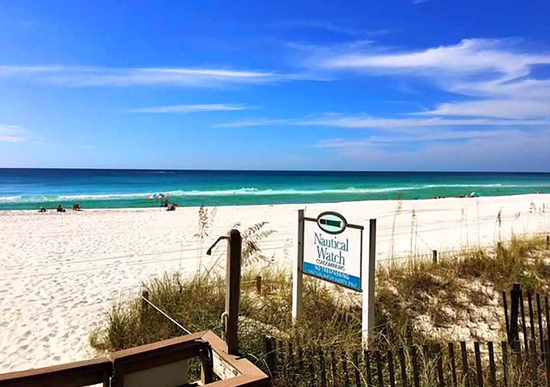 Nautical Watch is a family-friendly, low-rise Gulf front condominium on the east side of Panama City Beach. This beachfront complex is formed in a U-shape around a large pool for the family to enjoy. Nautical Watch has its private beach for you to enjoy the amazing white sandy beach and the clear emerald-green water of the Gulf of Mexico!