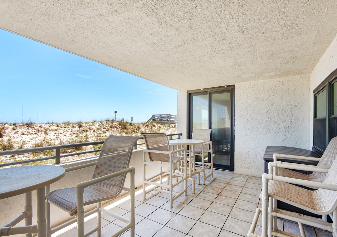 We really enjoyed our stay at this condo! No beach view since a dune blocks your view, but it's a trade off for no stairs, and it's literal steps from the pool and beach! We loved our stay and there were extra beach chairs and toys on the porch.- Reviewed On: 10/2/2024