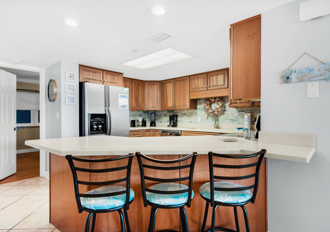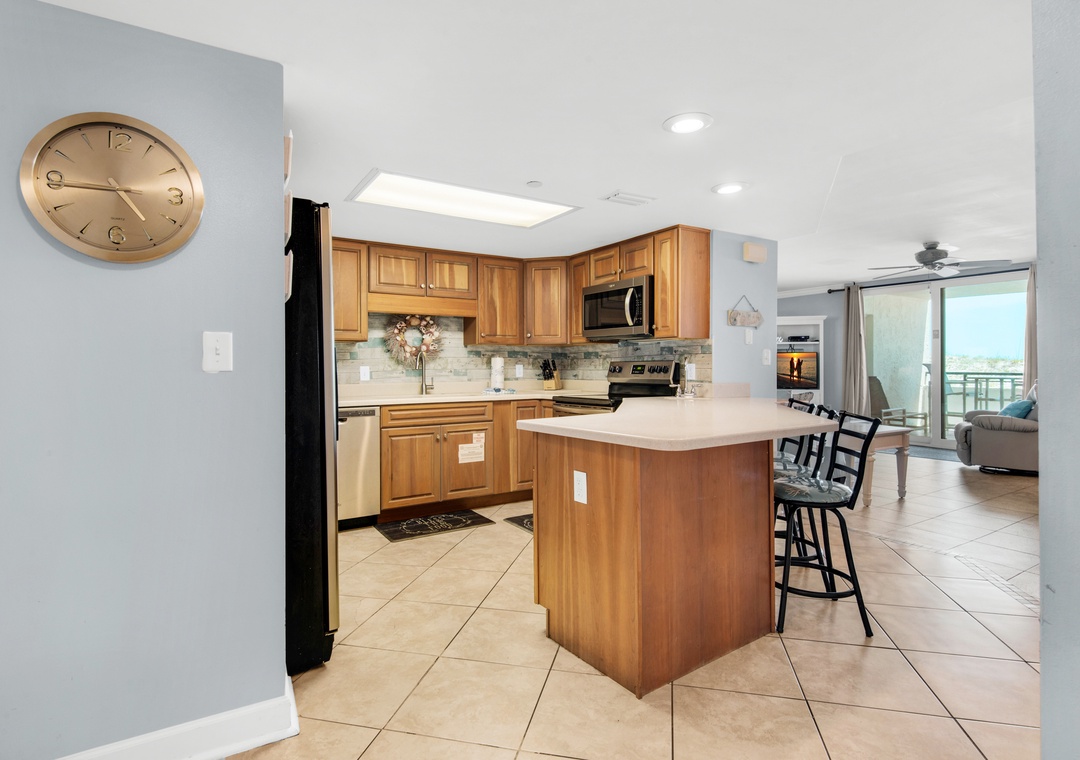 I had knee surgery in early May so I was very happy that this was on the ground floor and right in front of the pool. It was the perfect spot for us. The bridge to the beach was only a few steps away so we could easily get to the beach at any given time. There's a little convenient store next door so we could make runa to get snacks or drinks as needed when we didnt feel like making the short drive to Publix. The kitchen had all the dishes and utensils we needed for cooking, making coffee and eating. We had plenty of space for my family of 8 and sitting on the back patio listening to thewaves was very relaxing. I even fell asleep out there a couple of times. I would say there were a couple of issues but they were so minor to us that I didn't bother to report it. Since I'm sharing this review I'll share here. The bottom bunk is loud. I don't know if it's because of the way my kid was getting into the bed but it just made so much noise that we all knew every time they were getting in the bed. Lol. The other thing is that the tv in the front room would sometimes freeze or not turn on. Outside of those very minor things everything else was perfect. At the end of our stay, my 7 year old told me she wasn't ready to move out because she loved it so much. I hope to stay here again in the future.- Reviewed On: 6/24/2024