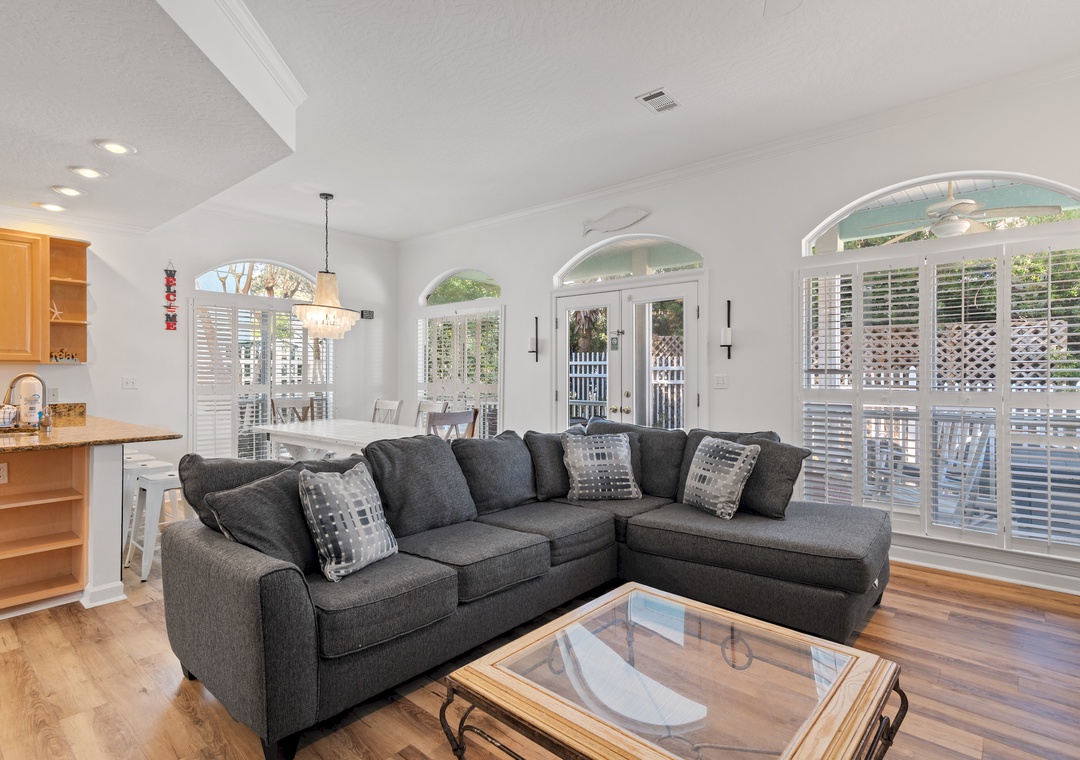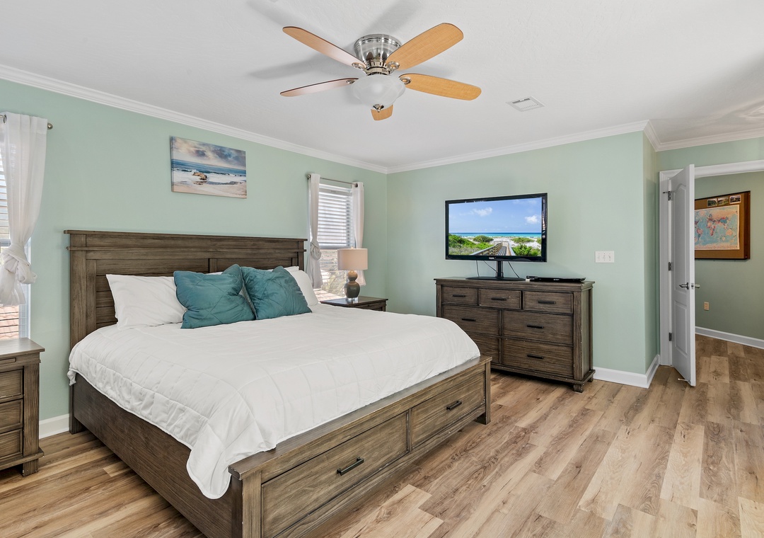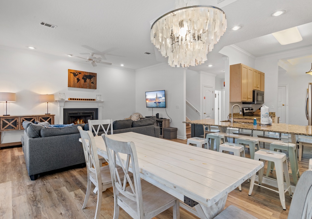 This charming 3BR/2BA home in Terra Cotta is newly updated and is only a short walk to the sugar white sand beaches and emerald waters of Destin. Ocean Breeze Cottage features a spacious open floor plan with a large flat screen TV and a cozy fireplace in the living room. The fully equipped kitchen has granite counter tops and stainless steel appliances. On the first floor you will find a queen guest bedroom and a bunk room with a full-over-full bunk bed. Climb the stairs to the 2nd floor king master bedroom with a sitting area and an en suite bathroom with dual vanities. Also on this floor is the twin-over-twin bunk area, helping this home sleep 10 comfortably. Take a short stroll to the community pool or the gated beach access less than 600 yards away. Ocean Breeze Cottage will have you coming back every year to make everlasting memories.