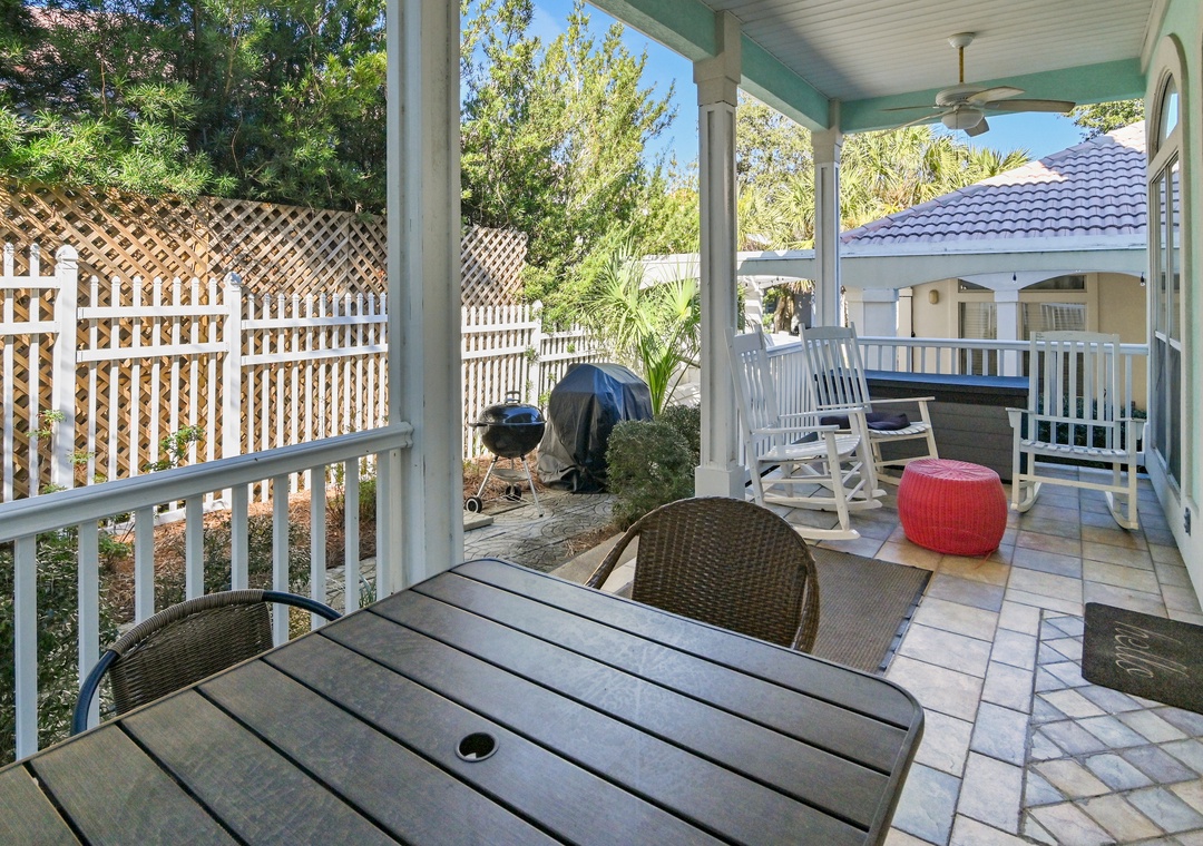 Peaceful neighborhood. Definitely recommend renting a golf cart to get around . We parked our vehicle and rode around on cart during our rental & it made it easier to get to beach and kept our vehicle clean. Pool & volleyball net are very close. Faucet on front porch made it easy to rinse off feet before entering home .- Reviewed On: 7/13/2023
