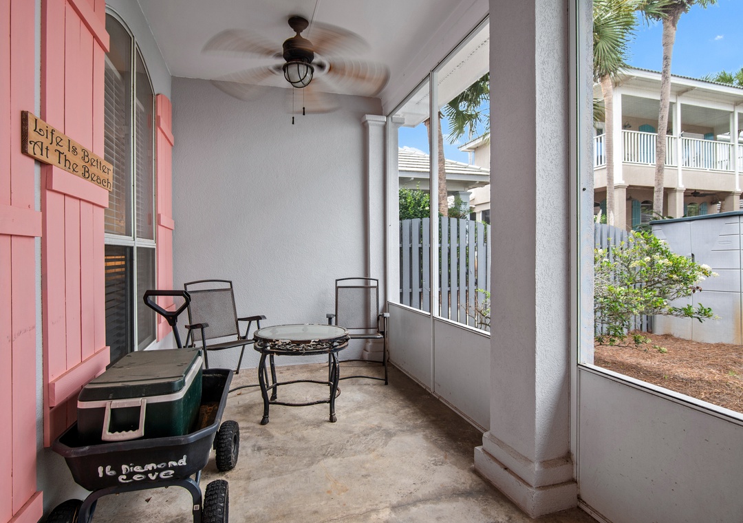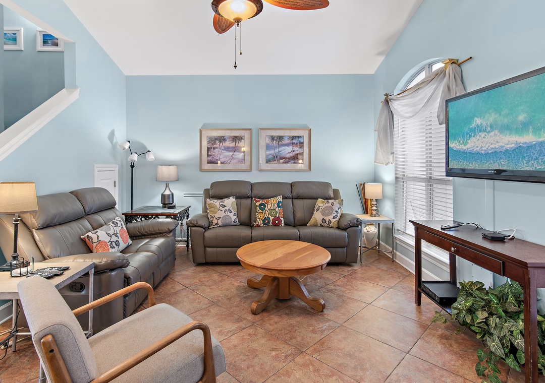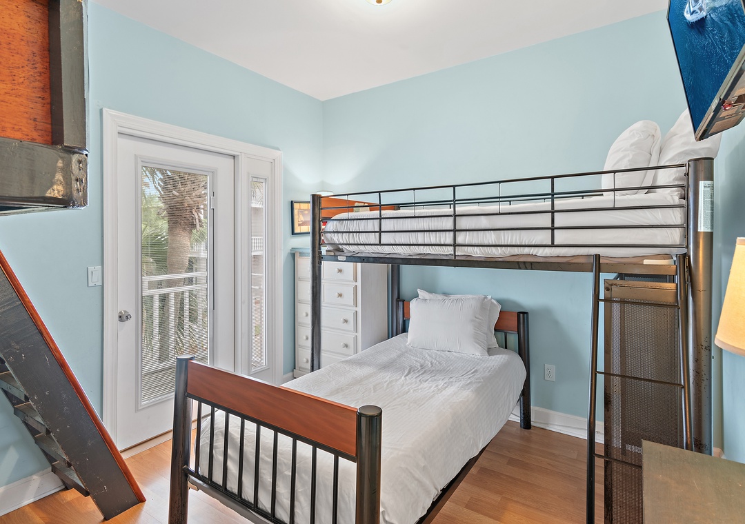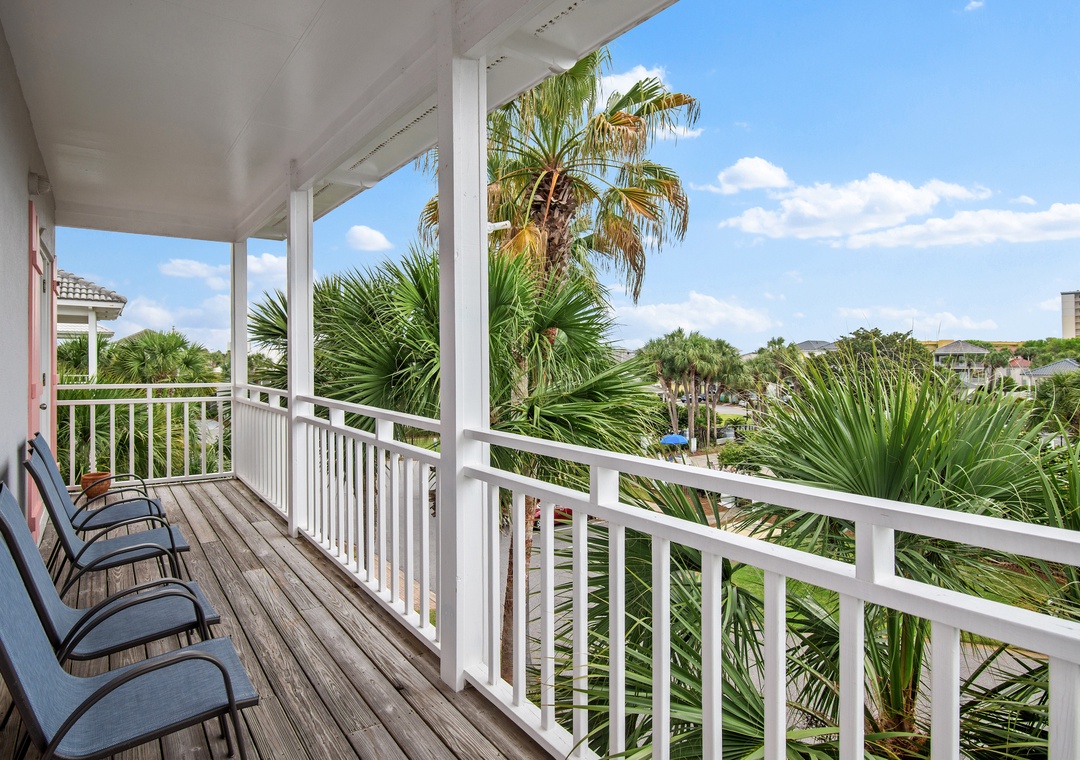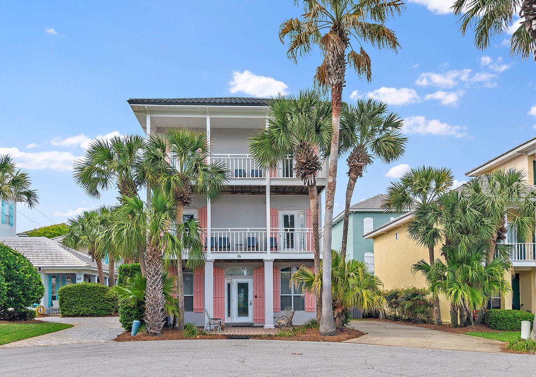 Experience the luxury of living like royalty for a week at Ocean Dreams, a beautiful Caribbean-style beach house in the exclusive Emerald Shores gated community! This spacious home offers 4 bedrooms, 3 bathrooms, and a fun bunk room, making it perfect for families or groups. Just minutes from the stunning Emerald Coast beaches and directly across from one of two community pools, it’s ideally located for a relaxing getaway. The master suite is conveniently located on the main floor, while the second floor features a queen bedroom and a bunk room with two sets of twin bunks. The third floor boasts a queen bedroom, two twin beds, a mini bar, and a covered balcony accessible from both rooms. Each floor has its own bathroom, and every room is equipped with a TV for your convenience. The front porch, expanded with brick pavers, offers ample seating, while the screened back porch and small backyard with a picnic table provide extra space to relax in privacy. Inside, the cozy living room is furnished with a large screen TV, leather sectional, desk, and mirrored curio. This beautifully decorated home is thoughtfully designed for your comfort and enjoyment – you’ll love every moment here!