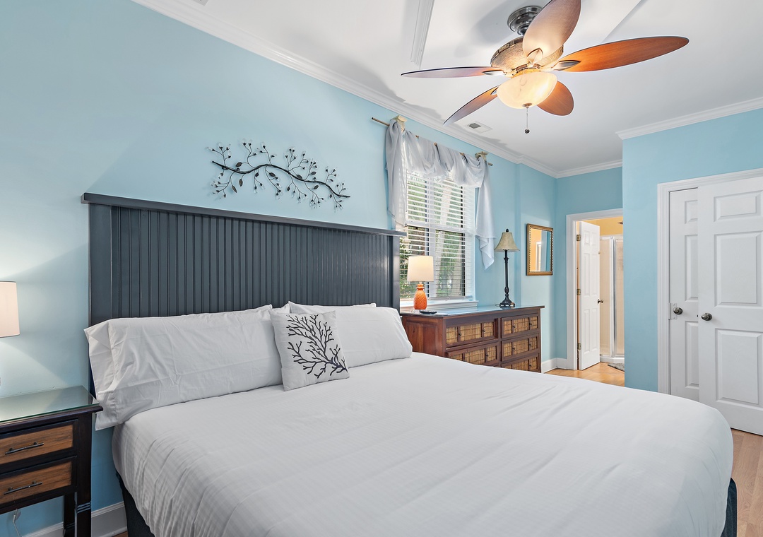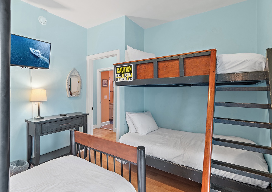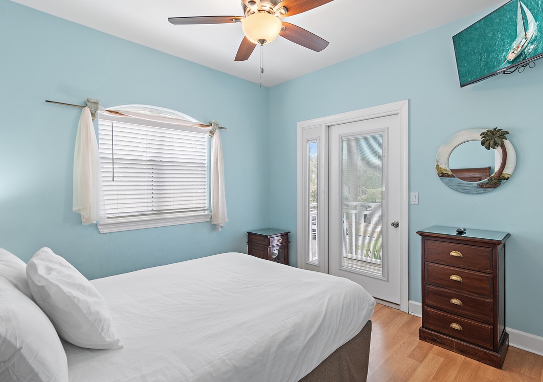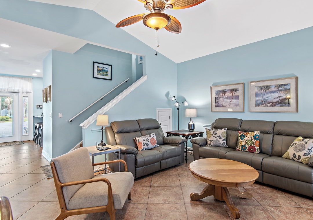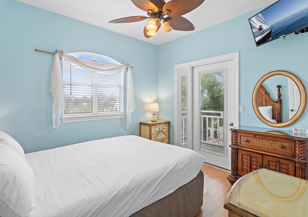 Experience the luxury of living like royalty for a week at Ocean Dreams, a beautiful Caribbean-style beach house in the exclusive Emerald Shores gated community! This spacious home offers 4 bedrooms, 3 bathrooms, and a fun bunk room, making it perfect for families or groups. Just minutes from the stunning Emerald Coast beaches and directly across from one of two community pools, it’s ideally located for a relaxing getaway. The master suite is conveniently located on the main floor, while the second floor features a queen bedroom and a bunk room with two sets of twin bunks. The third floor boasts a queen bedroom, two twin beds, a mini bar, and a covered balcony accessible from both rooms. Each floor has its own bathroom, and every room is equipped with a TV for your convenience. The front porch, expanded with brick pavers, offers ample seating, while the screened back porch and small backyard with a picnic table provide extra space to relax in privacy. Inside, the cozy living room is furnished with a large screen TV, leather sectional, desk, and mirrored curio. This beautifully decorated home is thoughtfully designed for your comfort and enjoyment – you’ll love every moment here!