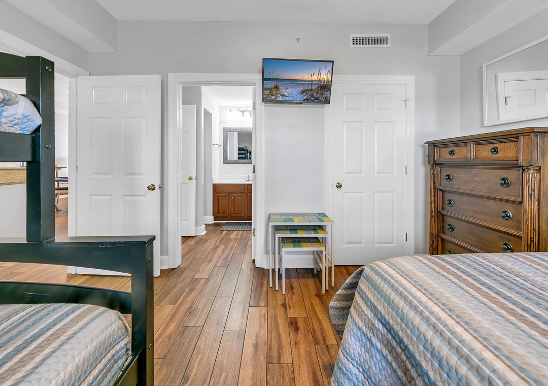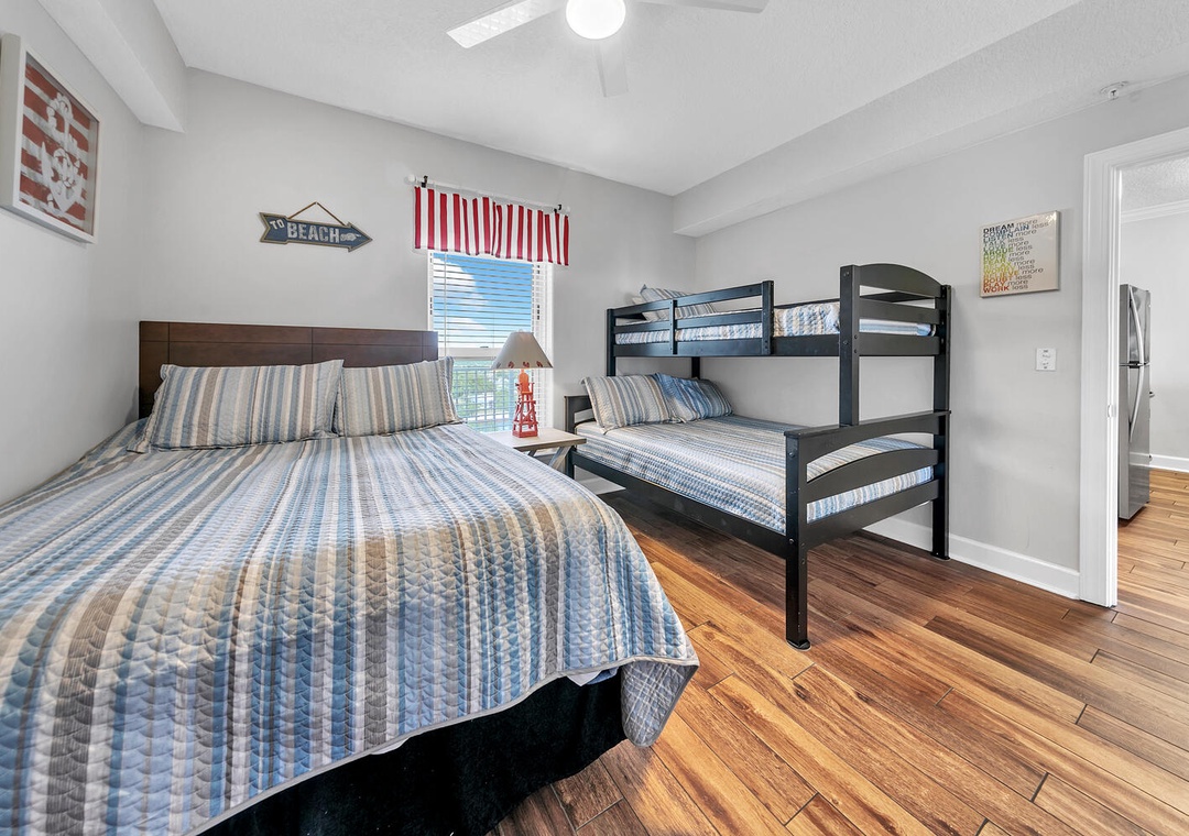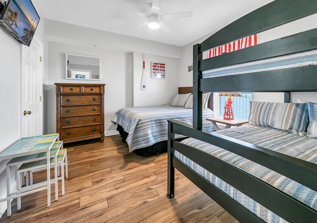 Guest Bedroom: Queen Bed + Twin Over Full Bunk
