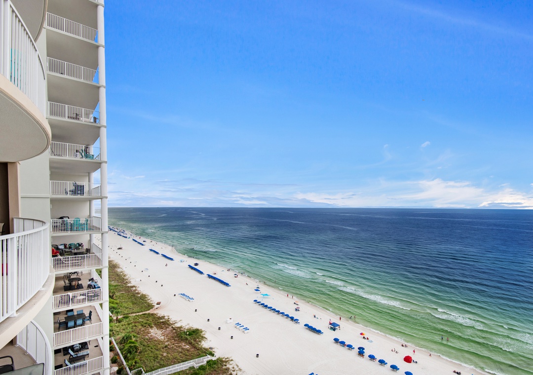 Located in the heart of Panama City Beach, this 23-story resort is within walking distance to several shopping options, restaurants, and area attractions. The enclosed walkover ensures safety and comfort while crossing the street from the 3-story covered parking deck. Guests staying in this resort will have access to many exciting amenities including 2 swimming pools (outdoor pool and seasonally heated indoor pool), an oversized hot tub, a grilling area, and an exercise room with sauna and steam room!