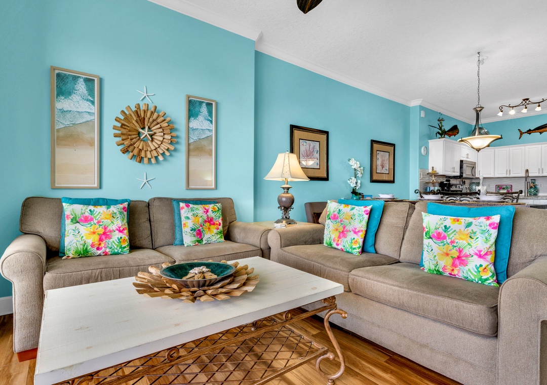 Walking into this condo, my family was in awe at how beautiful this home was! Everything ocean….ocean colors, decor, fresh, and very comfortable. The view from the balcony was stunning! Looking from the 23rd floor, we got to see schools of stingrays in the surf and dolphins. Truly a very relaxing vacation!- Reviewed On: 5/23/2021