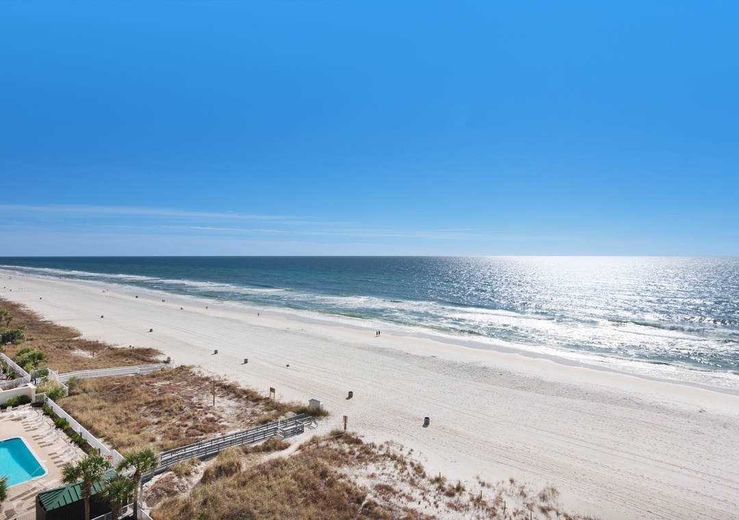 Located in the heart of Panama City Beach, this 23-story resort is within walking distance to several shopping options, restaurants, and area attractions. The enclosed walkover ensures safety and comfort while crossing the street from the 3-story covered parking deck. Guests staying in this resort will have access to many exciting amenities including 2 swimming pools (outdoor pool and seasonally heated indoor pool), an oversized hot tub, grilling area, and exercise room with sauna and steam room!