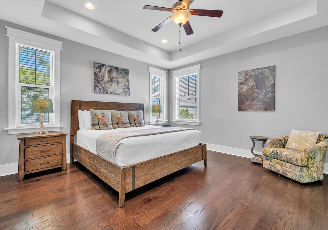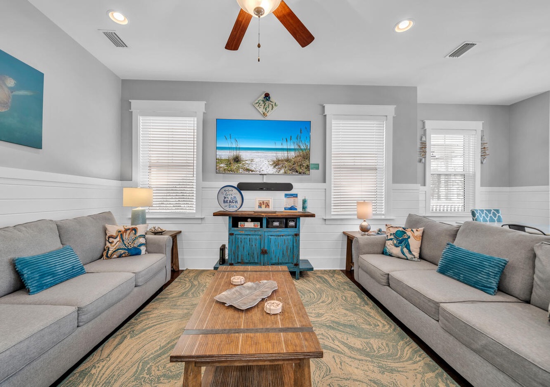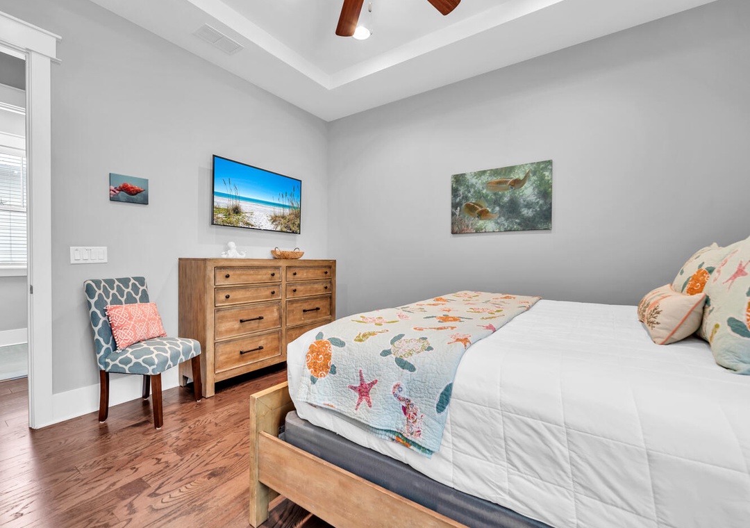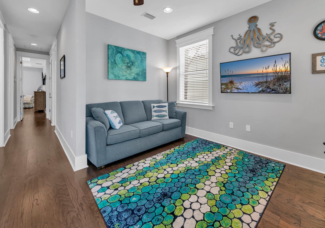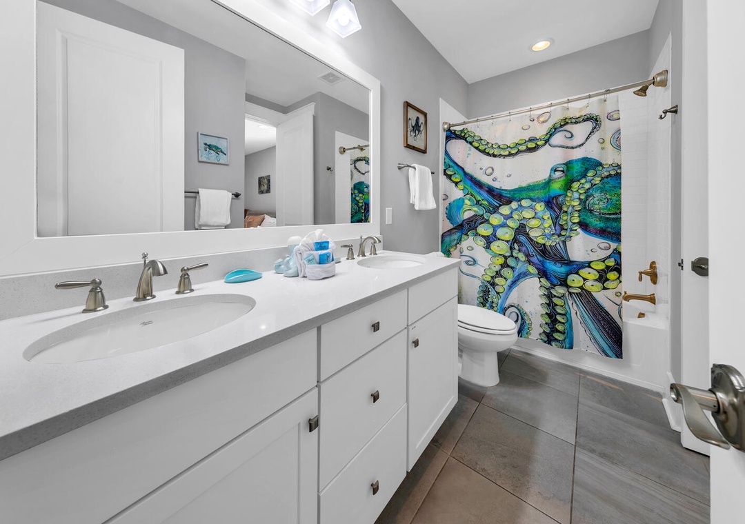 You will fall in love with the beautiful coastal décor that is highlighted by sea life images on canvas, taken by the owners. Octopus's Garden is a large 4-BEDROOM, 3.5-BATH HOME with everything you need for rest and relaxation. With TWO KING MASTER EN-SUITE BEDROOMS (ONE ON EACH FLOOR), QUEEN EN-SUITE BEDROOM, BUNKROOM FULL-OVER-FULL BEDS, LOFT SLEEPER SOFA, and a designated workstation; this home comfortably SLEEPS 12 GUESTS (INCLUDING INFANTS) with plenty of privacy.