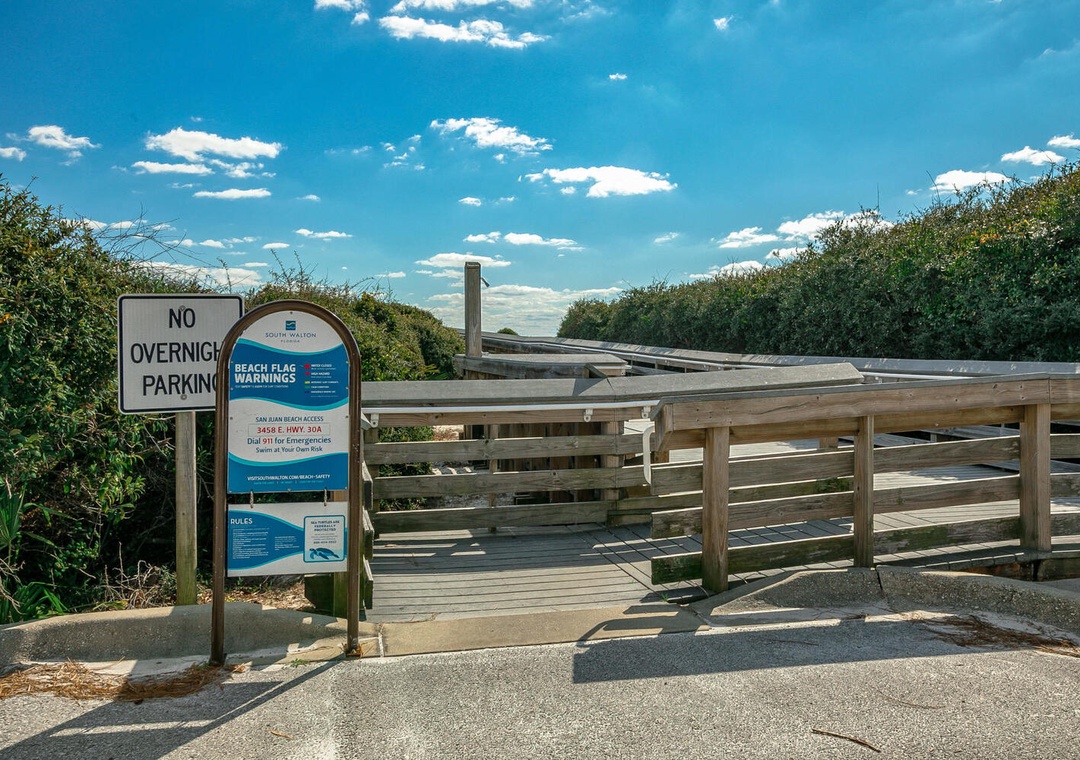 Our SEAGROVE BEACH HAS THE LARGEST STRETCH OF FREE, PUBLIC BEACHES ON 30A, ACCESSIBLE BY BIKE VIA NATUREWALK’S “LILLY LANE TRAIL” (1.5 miles), through the beautiful Point Washington State Forest. NOTE: Golf carts are not allowed on Lilly Lane or any other State Forest trails. Or TAKE THE GOLF CART / CAR (2.8 miles) via 30A to “SAN JUAN” and “SANTA CLARA” BEACH ACCESSES with FREE ENTRY and PARKING.