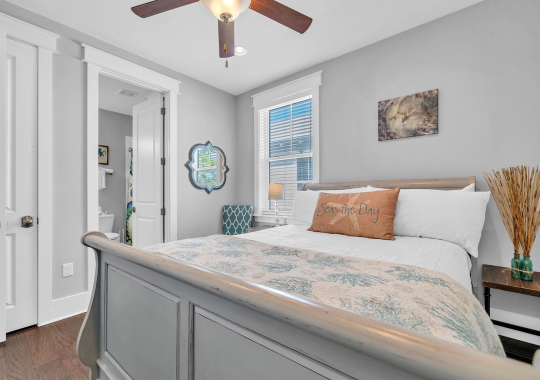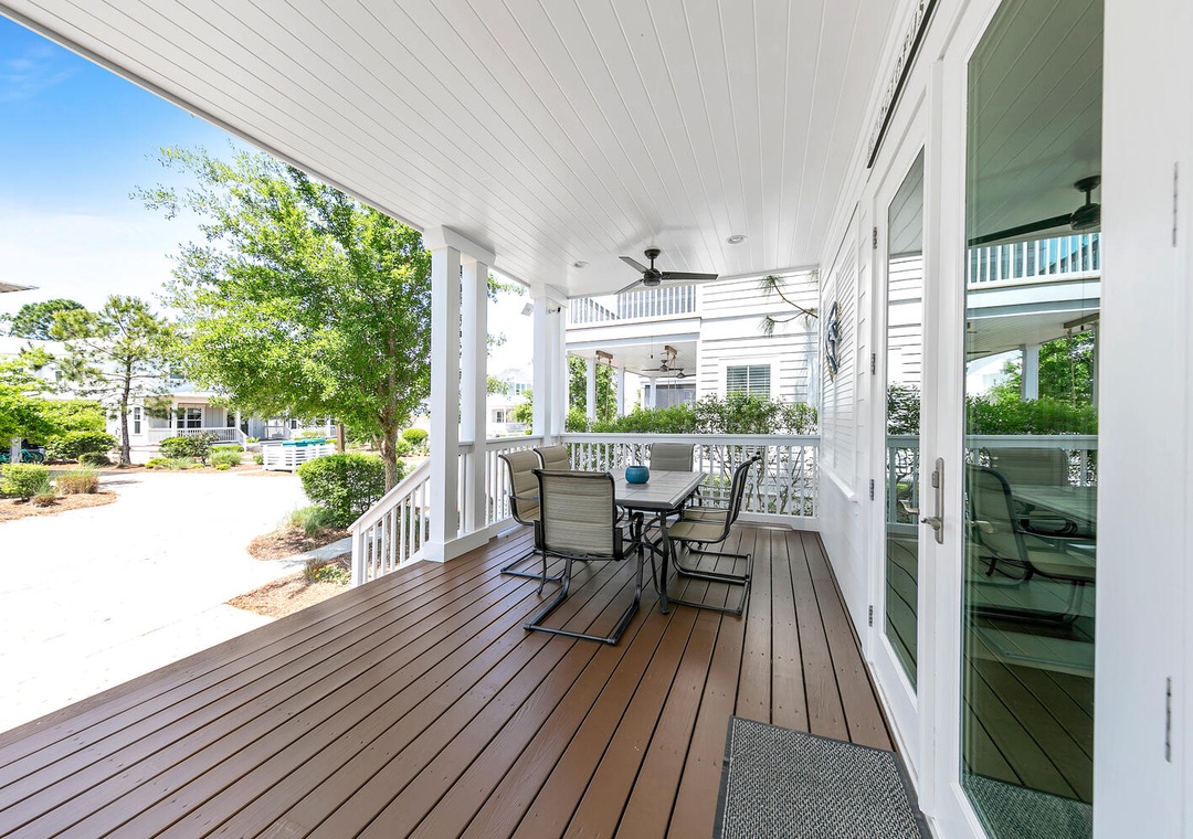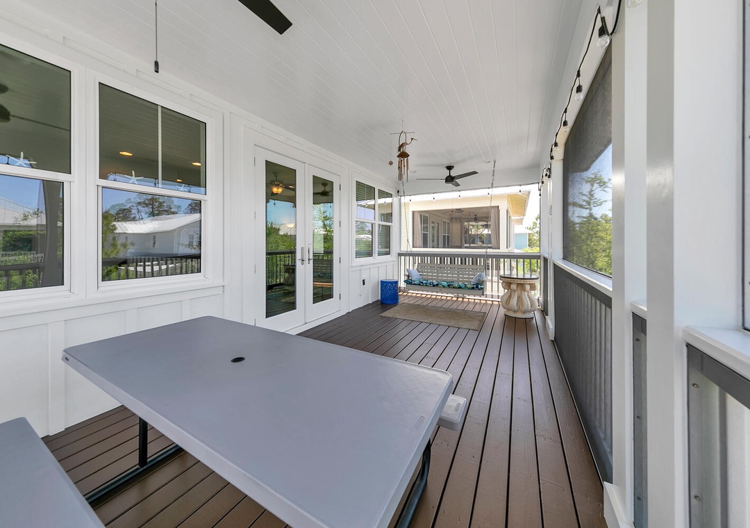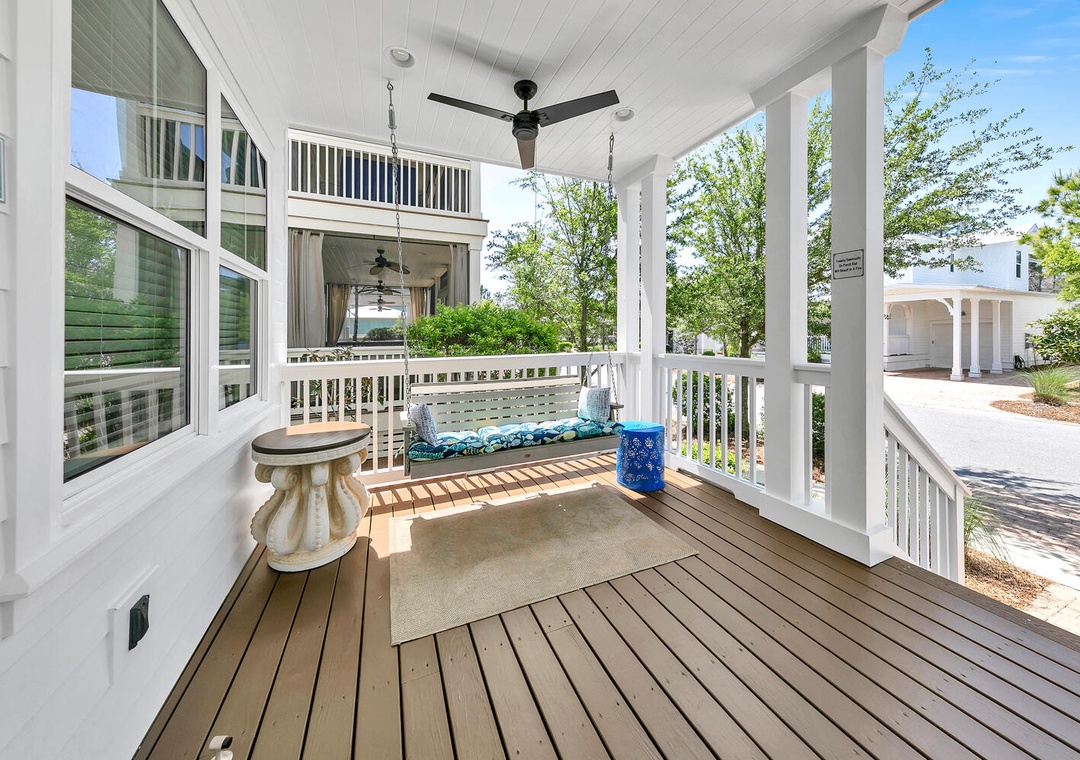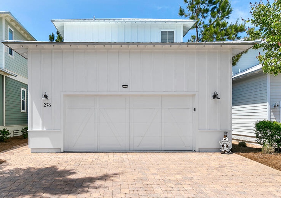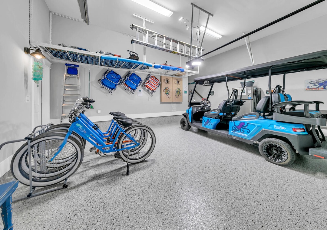 Enjoy the sunset from the TWO LARGE PORCHES that feature ceiling fans, swinging benches, and OUTDOOR DINING. The UPPER PORCH IS SCREENED for comfort and safety. There is a large driveway with PARKING FOR 2 VEHICLES. In the garage (no car parking) you will find 4 NEW BIKES so you can explore 30A and the trails. The garage houses the 6-SEATER, ELECTRIC, GOLF CART, a SECOND REFRIGERATOR (perfect for beverages), cornhole boards, 6 BACKPACK BEACH CHAIRS, BEACH UMBRELLA, and a small cooler. Just outside the garage, there is also a stainless-steel GAS GRILL and an OUTDOOR SHOWER for your convenience. For PICKLEBALL LOVERS, our beautiful vacation home PROVIDES 4 RACKETS with 2 BALLS for your enjoyment. The pickleball courts are located at the end of our street.
