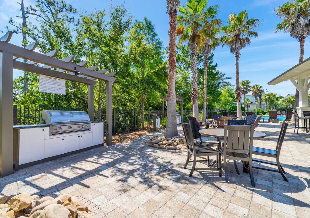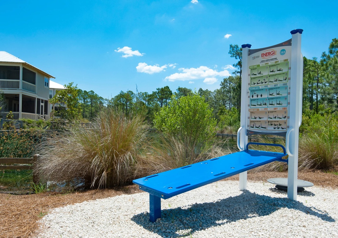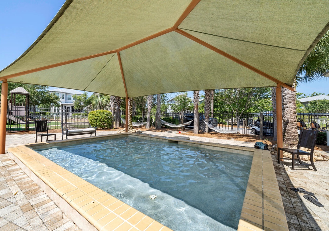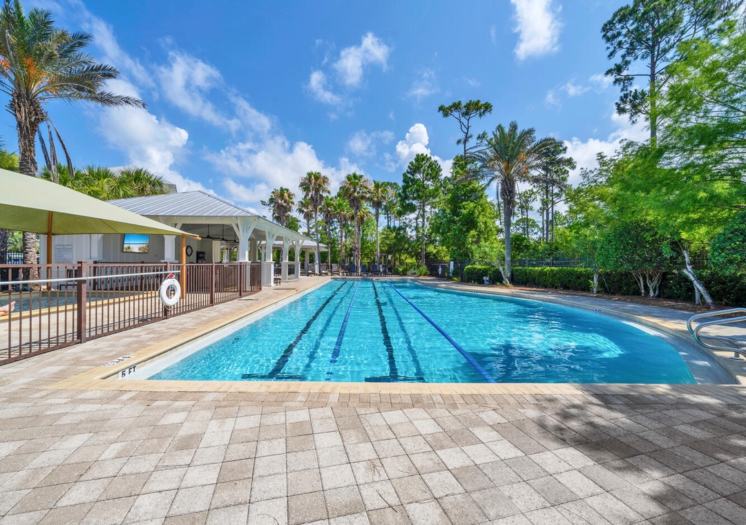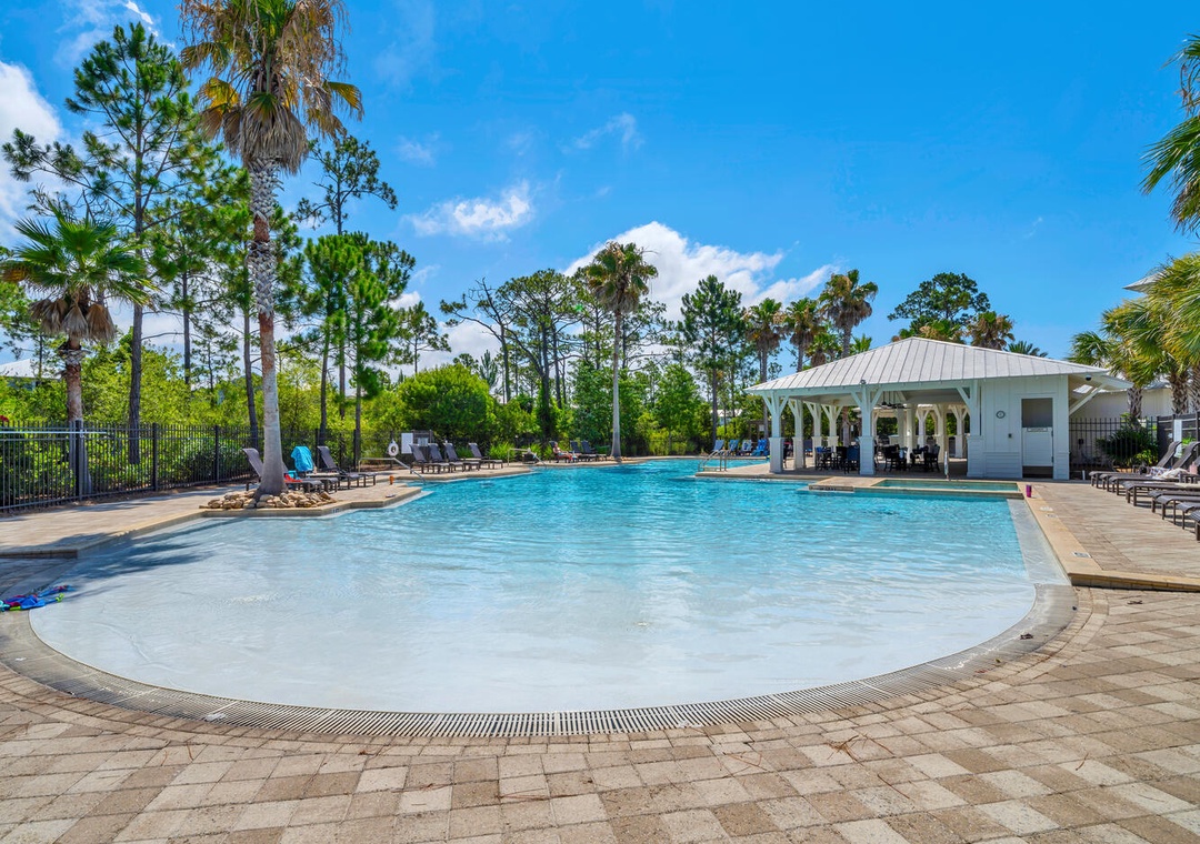NATUREWALK AMENITIES at the "Gathering Place" include a large ZERO-ENTRY POOL, an additional HEATED LAP POOL, a HOT TUB, lounge chairs, tables and chairs, a SHADED SPLASH POOL for toddlers, HAMMOCKS, outdoor TV LOUNGE, OUTDOOR KITCHEN WITH GAS GRILLS, and GAS FIRE PIT for family enjoyment. NatureWalk is the only community along 30A that offers food trucks at the "Gathering Place" for your family's enjoyment. Additional amenities include 2 PLAYGROUNDS, PICKLEBALL COURTS, WALK / BIKE PATHS, outdoor “Energi” FITNESS STATIONS, and a BASKETBALL COURT.