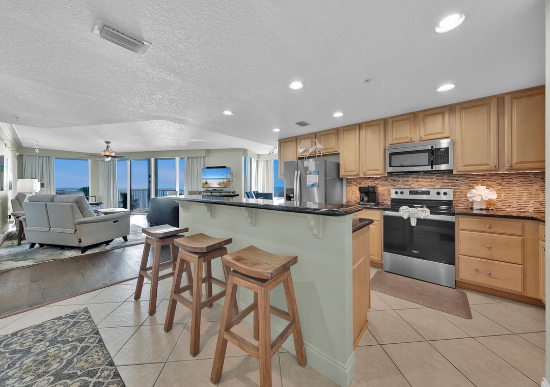* Gulf-front views from the Living Room, Master, and Guest room