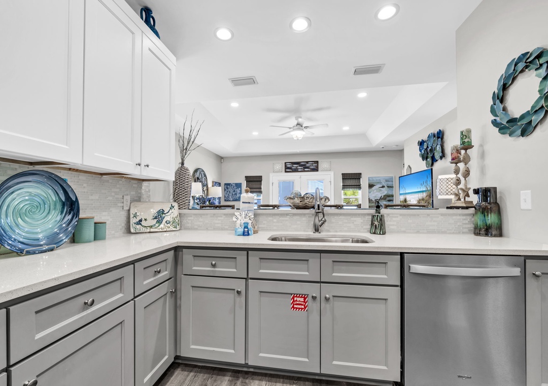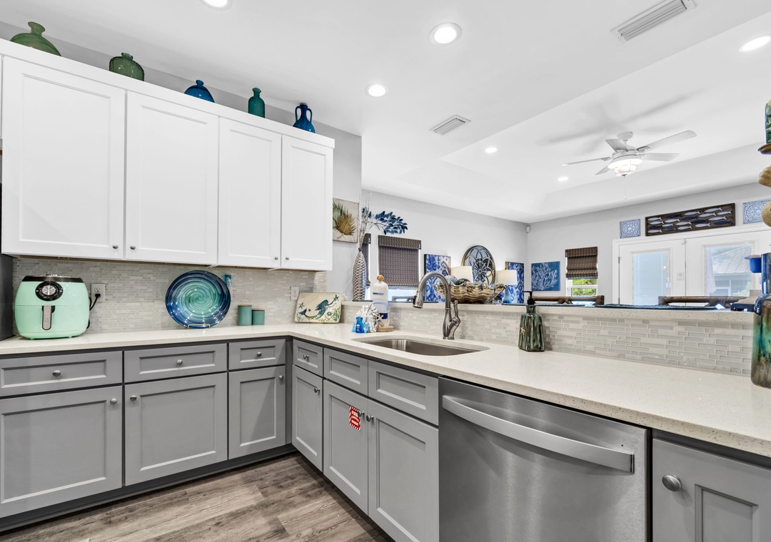 Discover Palms Beach Oasis, a charming 3-bedroom, 2-bathroom home located in a quiet neighborhood on the west end of Panama City Beach—just a three-minute walk from the white sandy shores. This thoughtfully designed home features an open concept living area, a spacious kitchen with quartz countertops, stainless steel appliances, and a breakfast bar perfect for casual dining and conversation.