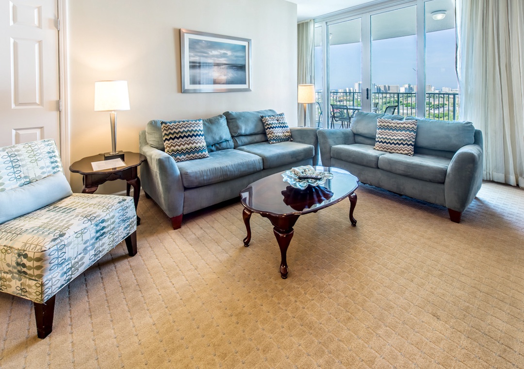 Our unit was beautiful! Great view of the pool area. The furniture in the living room needs replacing. The couch and recliner both have springs pushing up. The water goes down very slowly in the bathtub. By the time you've finished with your shower, you have a couple of inches of water you're standing in. We also ordered food from the Bistro and got a dry salad without dressing. I called down to ask for dressing to be brought up, but no one ever showed up.These things certainly didn't effect our wonderful week! We were very satisfied & everyone had fun! inches youre standing in. Otherwi- Reviewed On: 10/14/2024