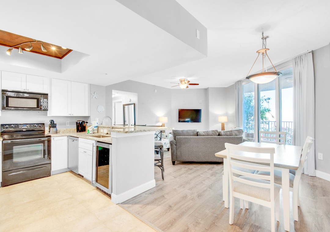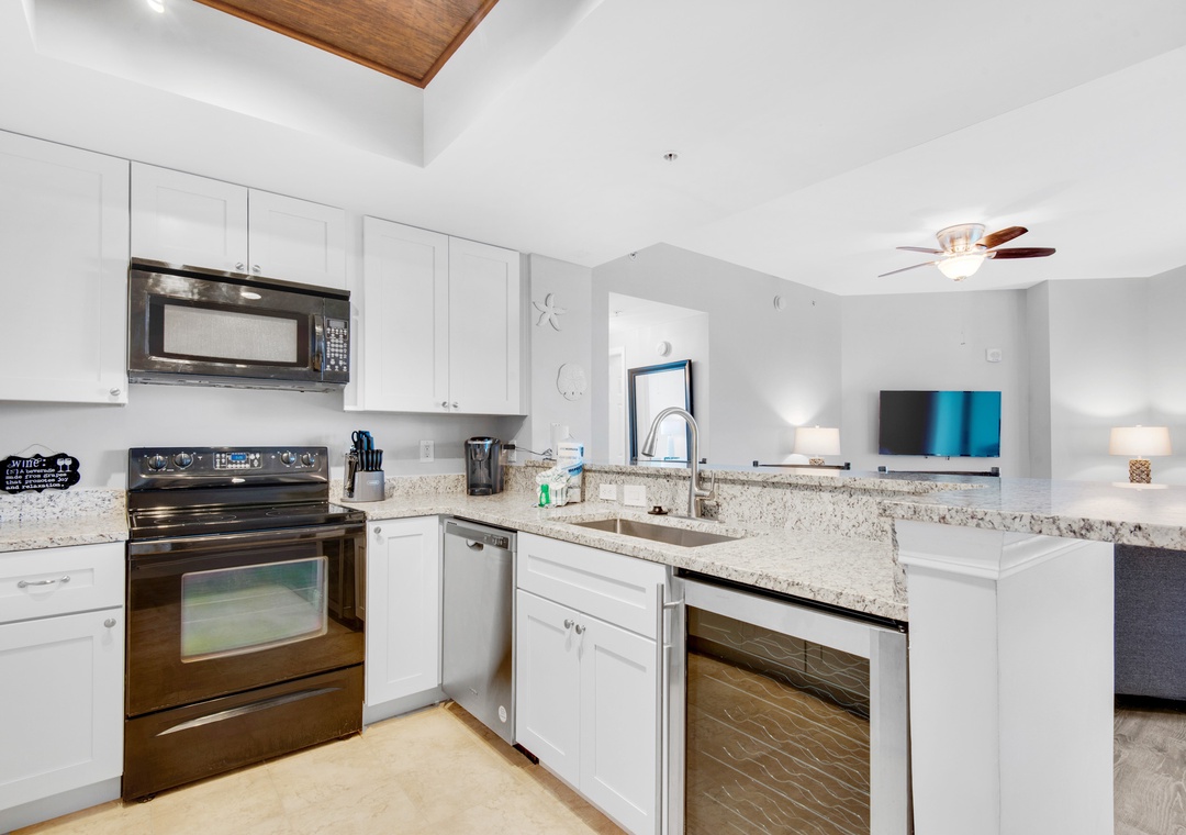 Step into coastal luxury at Palms of Destin #1202! This newly updated 2-bedroom, 2-bath condo features stylish décor, custom touches like a wine fridge and electric fireplace, plus a comfy sleeper sofa—sleeping up to 6 guests. Enjoy new flooring, built-in bookshelves, and a private washer/dryer for added convenience. Sip your morning coffee or evening wine on the oversized, shaded balcony. Resort perks include Destin’s largest lagoon pool complete with waterfalls, walking bridges, a heated pool, kids' splash area, and whirlpool spa. Just minutes from the beach, dining, and entertainment, this is your dream vacation spot!