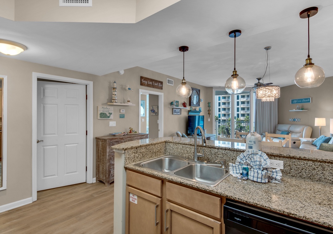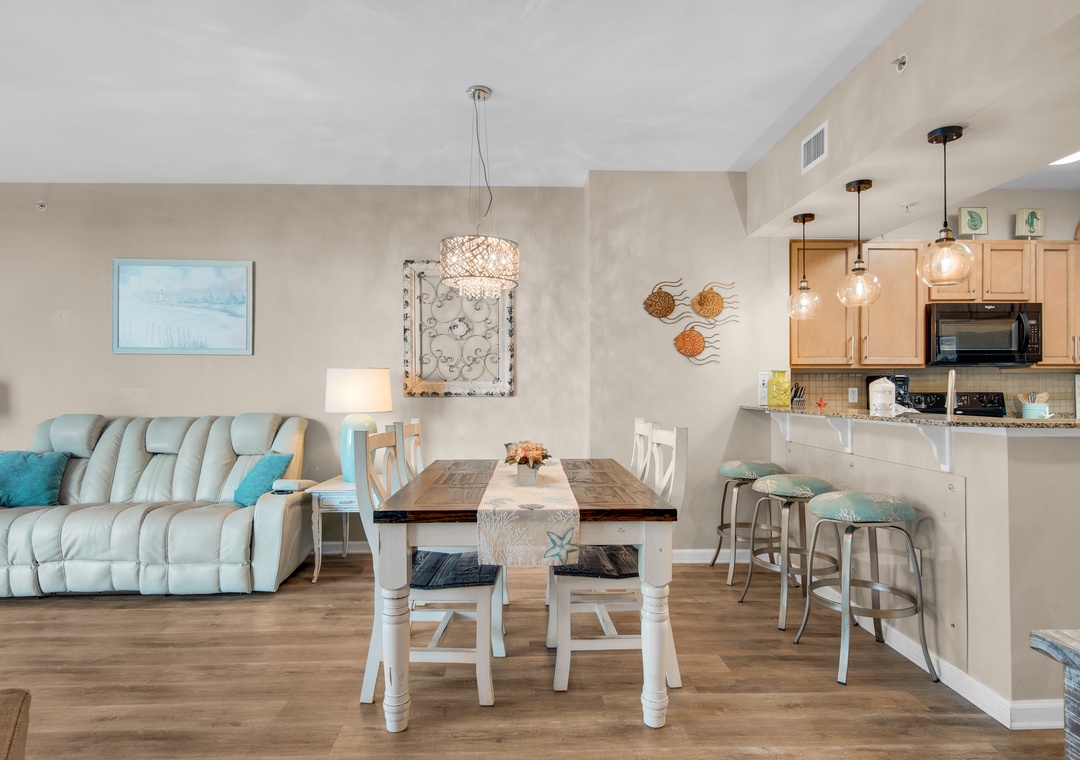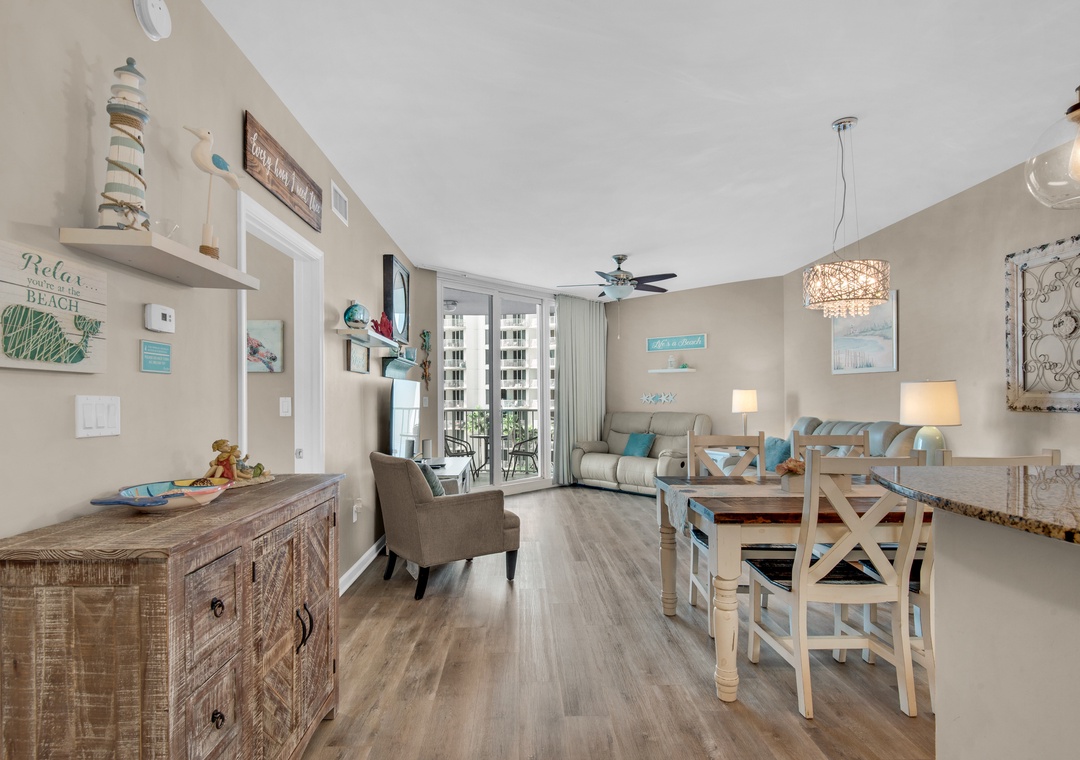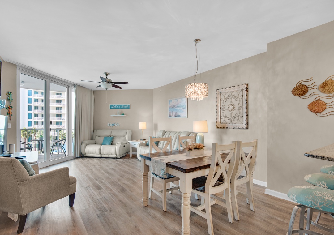 Welcome to the chic Palms Resort #1503. This condo is a Junior 2BR/2BA equipped with a full-sized master bedroom plus a smaller guest bedroom with two full bathrooms; one with a walk-in shower. The king master bedroom features balcony access and En suite. The guest bedroom features a twin over full bunk bed and a private bathroom entry. Nice furnishings plus a washer/dryer complete this beautiful unit. Come enjoy all that the Destin Palms Resort has to offer at Palms Resort #1503!