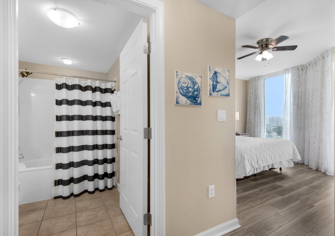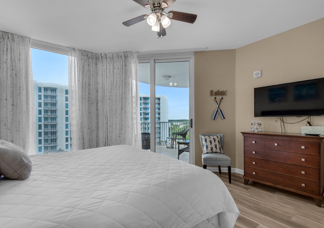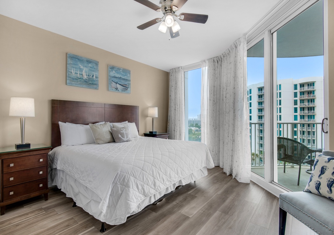 You'll never want to leave the Palms of Destin! Stay here for a true 'resort' experience. Palms Resort #1813 is a Junior 2BR/2BA, which is a 2 bedroom with a full-sized master plus a smaller bedroom, with two full bathrooms, one with a walk-in shower. The master has a king-sized bed and the second bedroom has a king bed and its own bathroom entry. With a queen pull out sofa bed in the living room, this lovely condo sleeps 6! Gorgeous furnishings, flat screen TV in the living area and your own washer and dryer complete this beautiful unit.