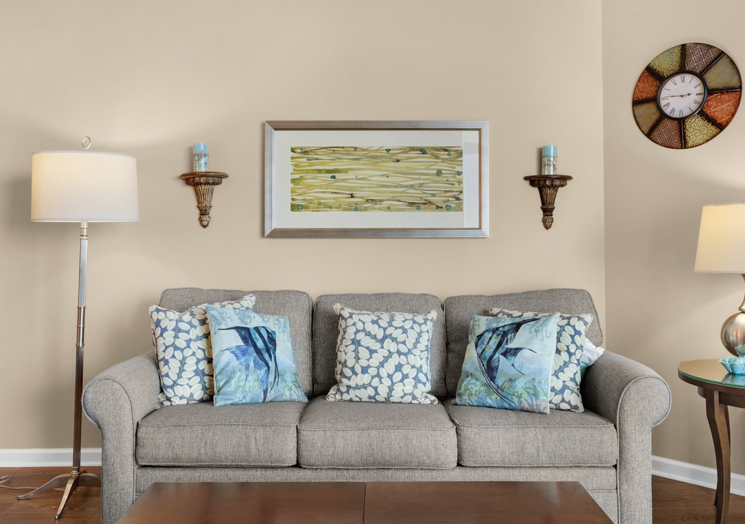 Palms Resort #1814 is a Junior 2BR/2BA, which is a 2 bedroom with a full-sized master plus a smaller bedroom and two full sized bathrooms, one with a walk-in shower. The master has a king-sized bed. The second bedroom has 2 twin beds, trundle style, and its own bathroom entry. With a King pull out sofa bed in the living room, this lovely condo sleeps 6! Gorgeous furnishings, flat screen in the living area and your own washer and dryer complete this beautiful unit.