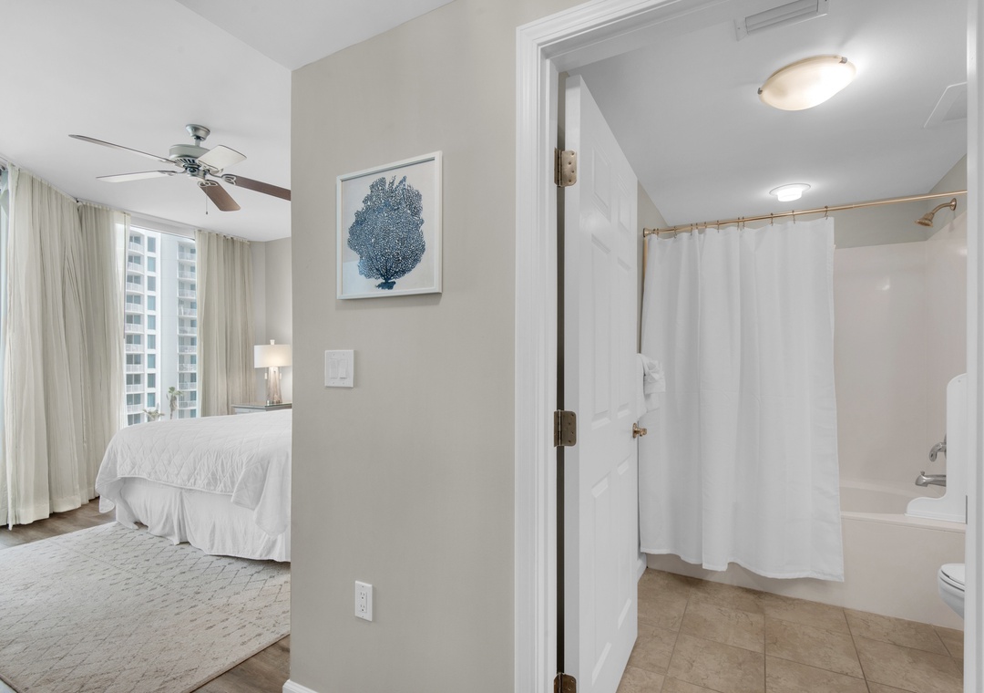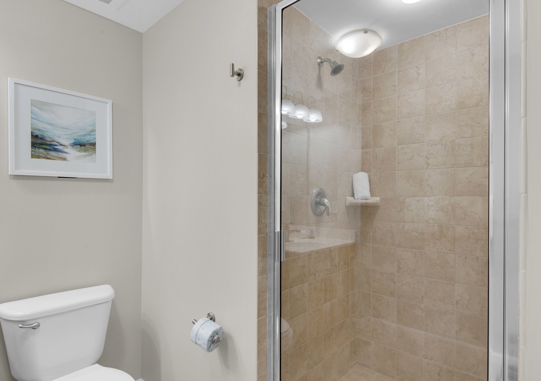 First the master shower issue that you have read on other reviews. Tilt the shower head as low as possible, block the back wall of shower with the shower curtain. Place a towel on outside of tub in that corner and all should be good. Great water pressure for getting all that sand off! The beds are so, so comfortable. My 13 y/o raved about the great internet and “the Ping was amazing”! The condo had everything we needed. The pool is huge. It was a wonderful week!- Reviewed On: 8/9/2021