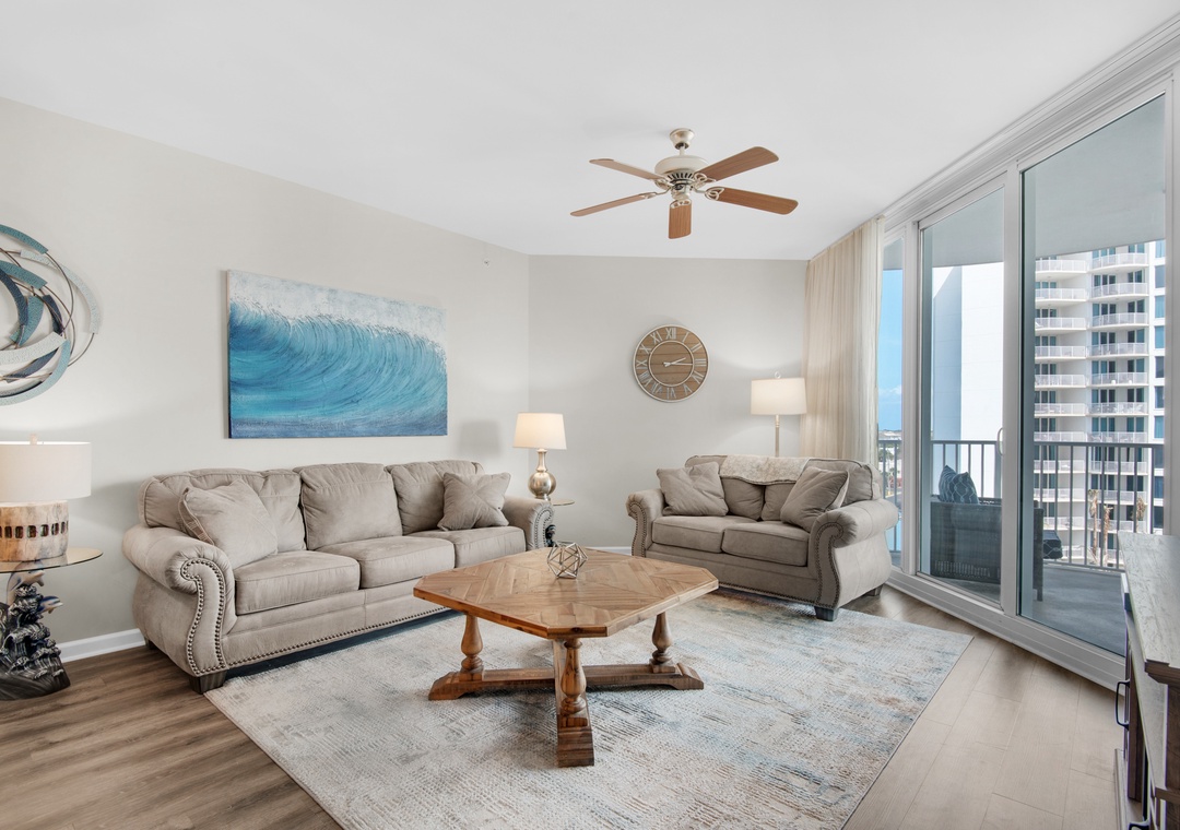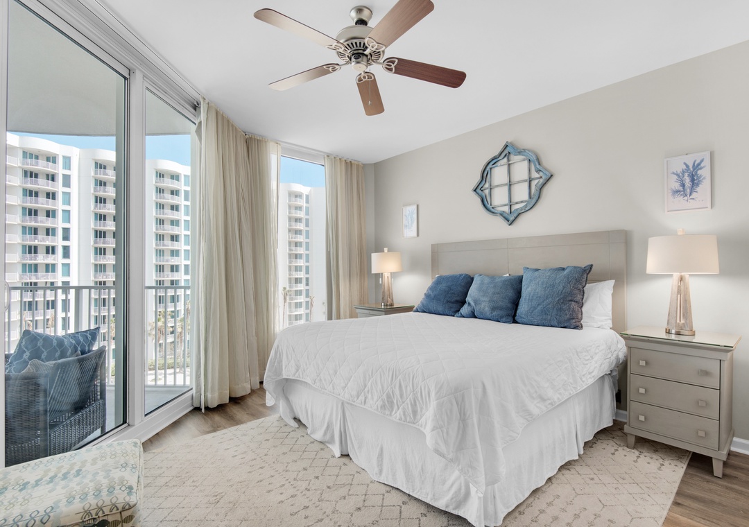 You'll never want to leave the Palms of Destin! Stay here for a true 'resort' experience. Palms Resort #2603 is a Junior 2BR/2BA, which is a 2 bedroom with a full-size master bedroom plus a smaller bedroom and two full sized bathrooms, one with a walk-in shower. Enjoy the stunning 6th floor Gulf and Pool views from your private balcony! With a king bed in the master, a queen bed in the guest room, and a sleeper sofa in the living room, this lovely condo sleeps 6 guests comfortably. Gorgeous, updated furnishings, all new flooring throughout, multiple flat screen TVs, and your own washer and dryer complete this beautiful unit. Palms Resort #2603 is sure to make you feel right at home on your beach getaway!