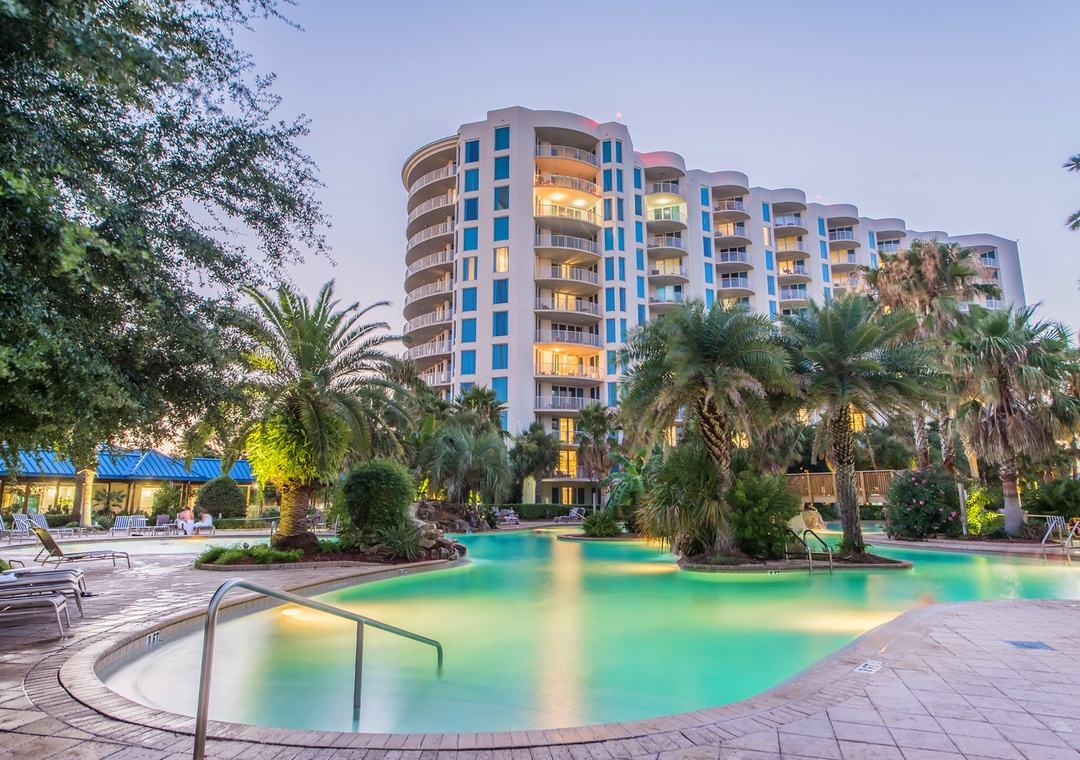 Located on 15 beautiful acres, The Palms of Destin Resort and Conference Center offers an unbeatable, upscale experience in the heart of Destin at an affordable price. As an exclusive guest, you will enjoy Destin’s largest lagoon pool beneath swaying palms or simply enjoy our many amenities including kid's activities, fitness center, kids' playground, tennis and basketball courts. You'll also be within walking distance of Joe's Crab Shack, Bubba Gump Shrimp Factory, The Back Porch (a Destin classic), Ruth's Chris Steak House, Jim-N-Nick's BBQ, and Hooters. You'll never want to leave the Palms of Destin! Stay here for a true 'resort' experience.