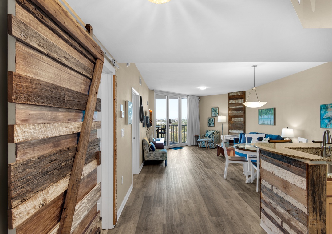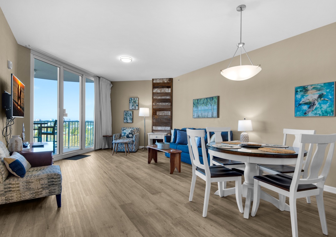 Welcome to Palms Resort #2812 -Sunset Dreamer. This lovely condo is a junior 2BR/2BA featuring partial Gulf views as well as views of Destin. With a king in the master bedroom, full over full bunkbed in the smaller guest bedroom, and sleeper sofa in the living room, this unit comfortably sleeps up to 6 guests. Enjoy the master ensuite bathroom and full second bathroom with walk-in shower and private entrance from the guest bedroom. After a long day at the beach or pool, take in the gorgeous sunset views from the spacious balcony. NEW Luxury flooring throughout, flat screen TVs in the living room and master bedroom, plus a washer/dryer in-unit complete this beautiful condo at the Palms of Destin Resort where you can get a true resort experience. The 11,000 square foot, 259,000 gallon, zero entry pool is DESTIN 'S LARGEST LAGOON POOL. You'll be blown away by the 5 dancing waterfalls, walking bridges, and spacious lounging area. Additionally, there is a 21,000 gallon heated pool, children's splash area, and whirlpool. Escape to Palms Resort #2812- Sunset Dreamer today!
