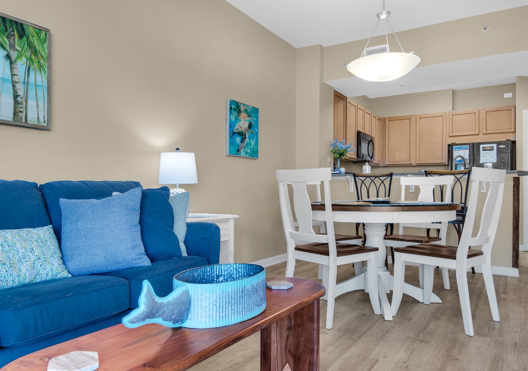 Beautiful condo. Open floor plan. Gorgeous views of the sunset. About a 15-minute walk to the beach (with kids). Appreciated the wagon with a shade umbrella and 4 beach chairs. The bedding is comfortable. Bunk beds are full-size (not twin) each. The only thing that would have helped is to have a Smart TV setup in the living room to watch with family. There is a smart TV in the master bedroom. The building is old but clean and well-maintained. If you like good customer service, do not eat at the restaurant downstairs. There are pools for all ages. Beautiful poolside landscaping. The location is central. A shuttle to the beach was appreciated as well as a closed garage parking. Next time we will look for something closer to the water to optimize vacation time. Overall this is a very nice place.- Reviewed On: 8/18/2023
