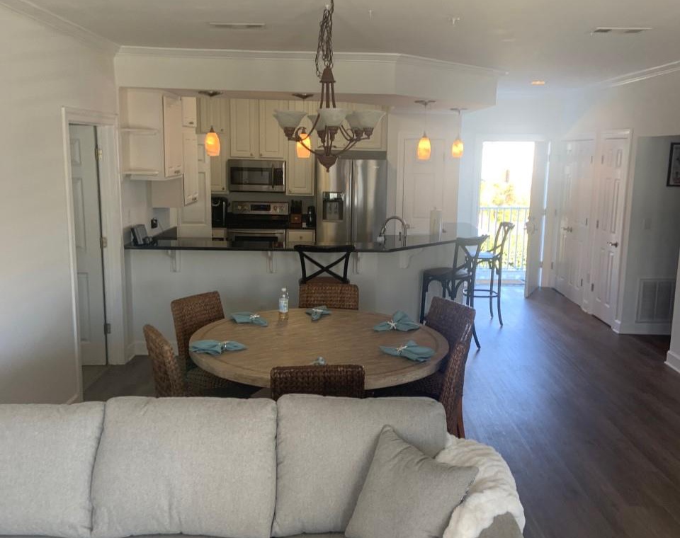 Pavilion Palms 103B is a spacious second-floor condo in the heart of Miramar Beach, offering a comfortable and family-friendly retreat just steps from the shore. Designed to accommodate up to eight guests, this three-bedroom, three-bath residence features a king master suite, one guest bedroom with a queen bed, and a second guest bedroom with two queen beds, providing plenty of space for everyone to unwind. The private balcony overlooks the pool, making it an ideal spot to enjoy morning coffee or relax after a day in the sun. Inside, the fully equipped kitchen makes preparing meals easy, while the in-unit washer and dryer add everyday convenience. With sugar-white sands and emerald waters only a short walk away, Pavilion Palms 103B combines the ease of home with the appeal of a prime beachside escape.