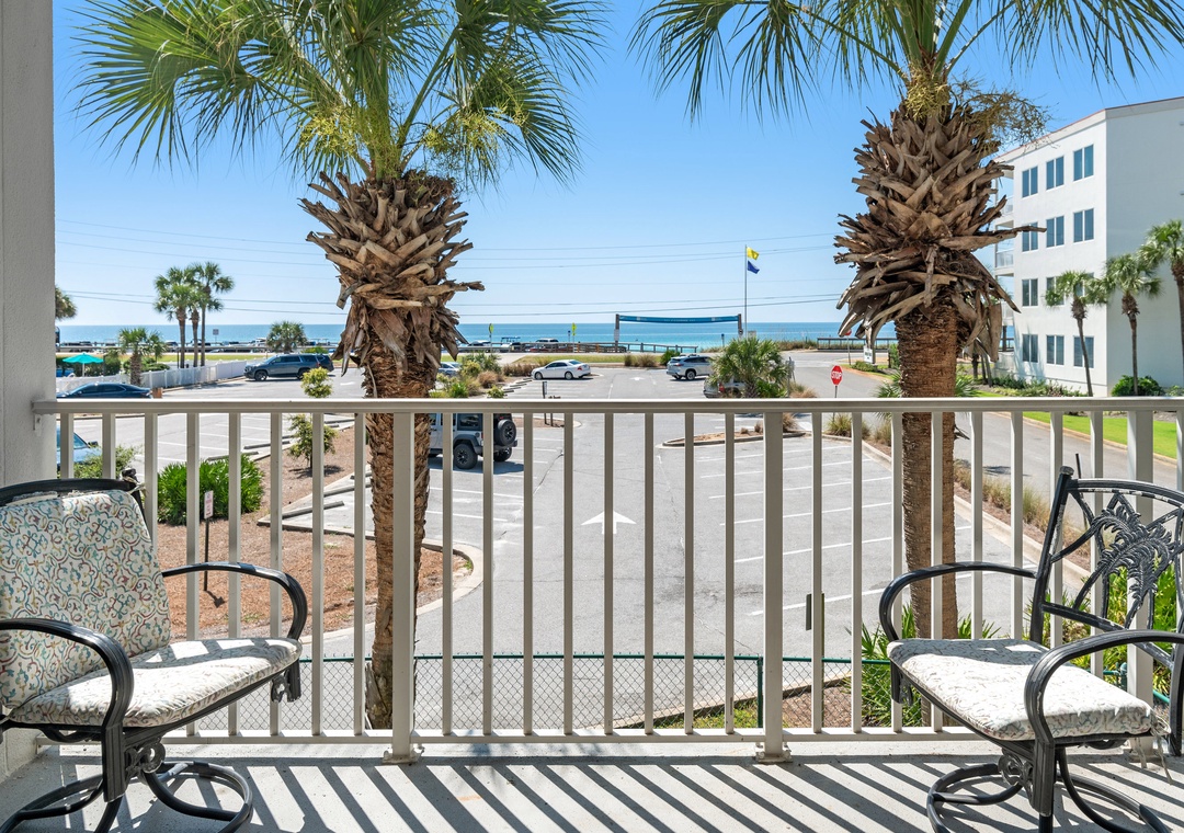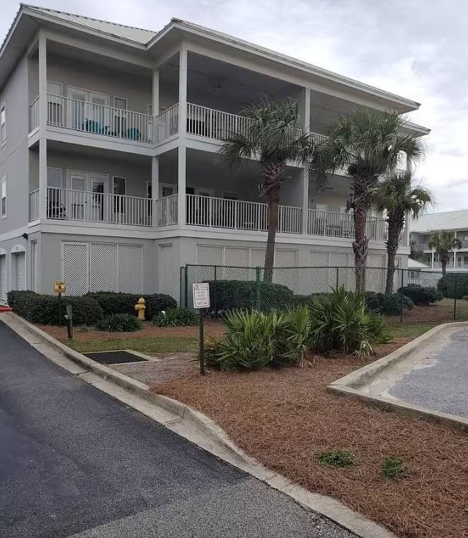 Pavilion Palms is a low-rise condominium community in Miramar Beach, Florida, offering a serene coastal retreat just steps from the Gulf of Mexico. Designed in a distinctive crescent shape, the complex provides panoramic Gulf views and direct access to a private stretch of sugar-white sand via a dedicated boardwalk. Guests have access to a beautiful community pool. Pavilion Palms' prime location places guests within walking distance of popular dining spots like the Surf Hut and close to shopping destinations such as Silver Sands Premium Outlets and Destin Commons, making it an ideal setting for a memorable beach vacation.