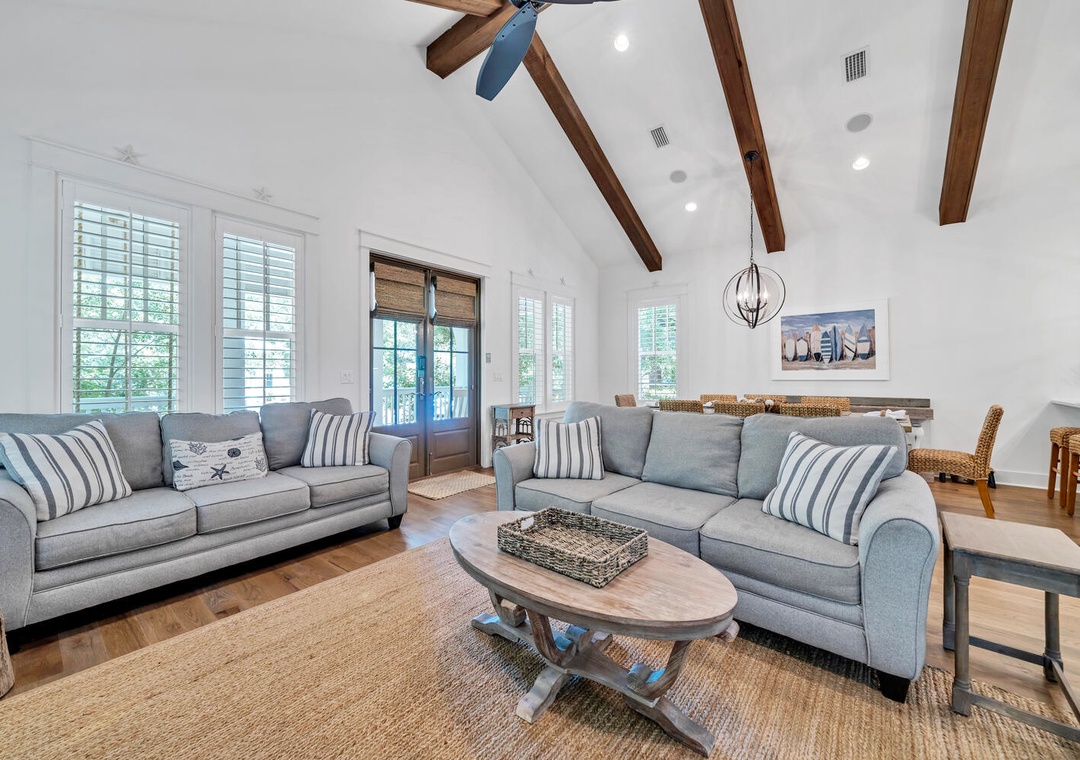 Hop on the bikes and head to the beach, relax by the two community pools, or enjoy a stroll around the lake! You are sure to enjoy all the nearby attractions, especially Gulf Place Town Center. With many restaurants, boutique options, and the beautiful beaches of 30A nearby, you are sure to make long lasting memories at Peaceful Easy Feeling.