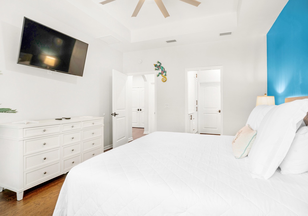Very Nice newer home with everything we needed for a perfect beach vacation! Short walk to the beach, in a nice safe neighborhood. The privacy was a plus for us; with a private pool and a short distance off the beachfront road; not in the overcrowded congested areas. Lots of extras, I.e, electric reclining master bed was nice to watch late night movies, washer and dryer, and a private golf cart if you needed one