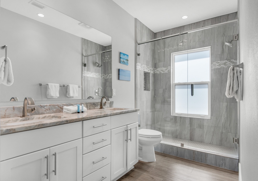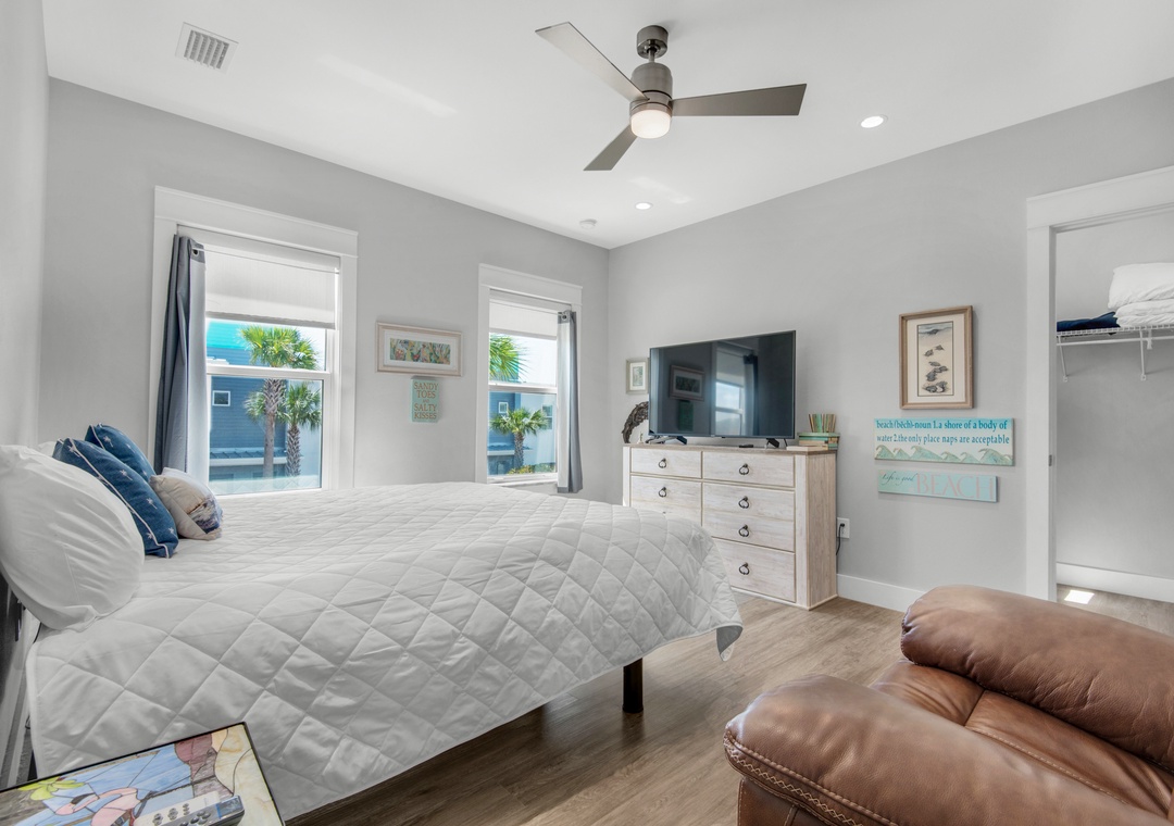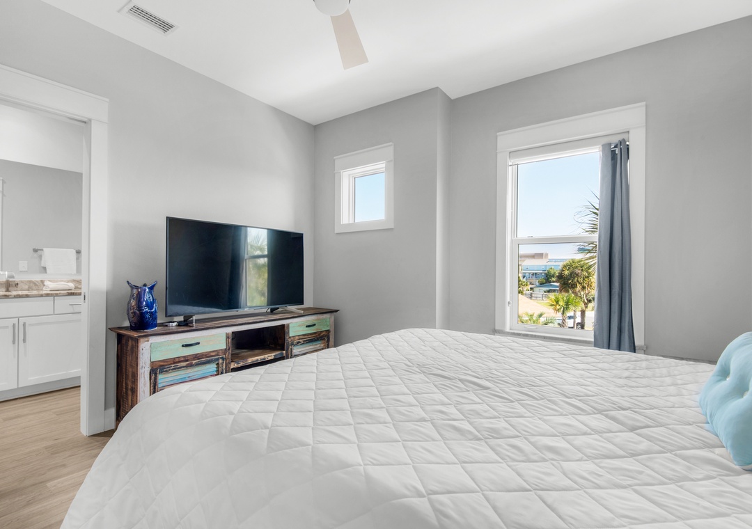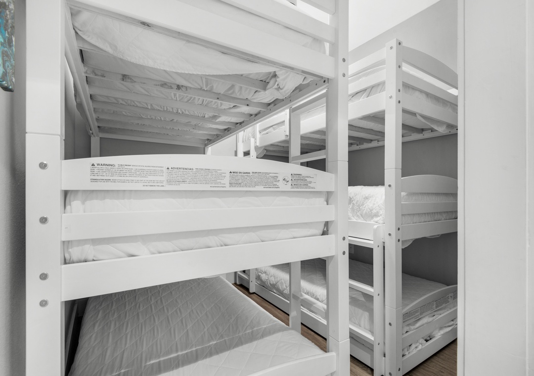 Outside, there's a furnished balcony on the second floor and a furnished patio on the lower level. For sleeping arrangements, on the top level you will find the master suite with a king size bed, stunning walk-in shower and double vanities - giving ample space to retreat. A separate retreat for guests is also located on this floor and features a king size bed with a separate bathroom. On the bottom floor are the three remaining bedrooms. The intimate bunkbeds tucked away in the study are a perfect place for kids to retreat after a full day at the beach! Adjacent to the bunkroom are the final two guest rooms both with a Queen-sized bed and a walk out to the patio, perfect for enjoying the sunrise or sunset! On this floor you will also find another spacious bathroom, the laundry room with a washer and dryer, and storage galore!