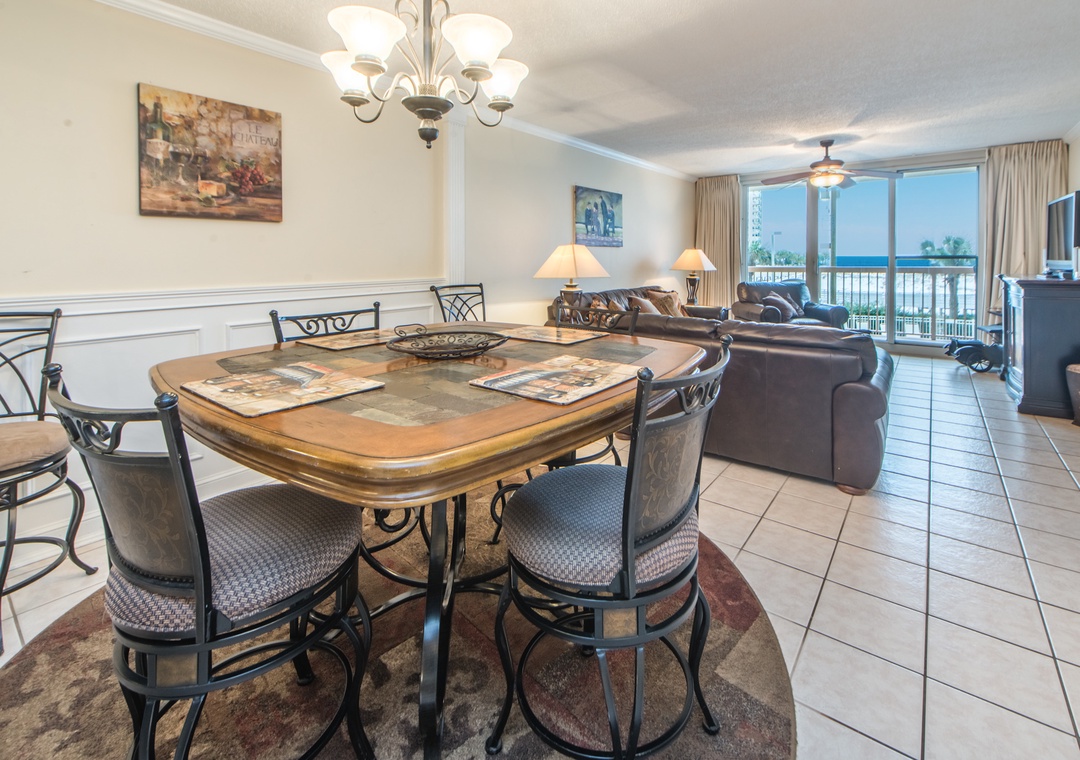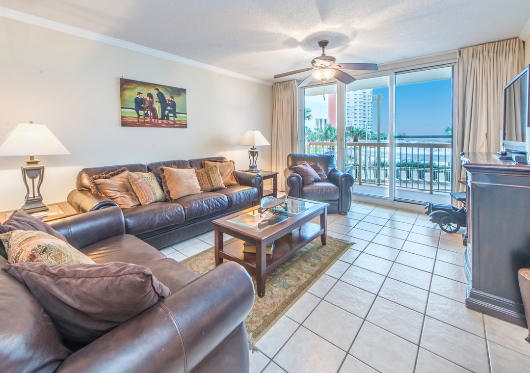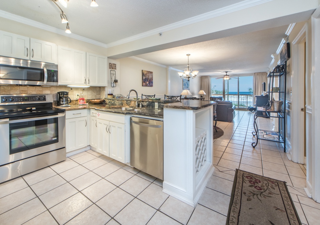 Pelican Beach Resort 213 features stunning Gulf Views from your private 2nd floor balcony. This beautifully decorated 2BR/2BA condo offers tiled floors throughout and a fully equipped kitchen with granite countertops, stainless steel appliances, a dining area and breakfast bar. The master bedroom has a king size bed, private bathroom, gulf views and balcony access! With a queen bed in the guest bedroom, this lovely condo sleeps up to 4 guests comfortably. Make Pelican Beach Resort 213 your next beach destination and find out why this is a Destin vacation favorite!