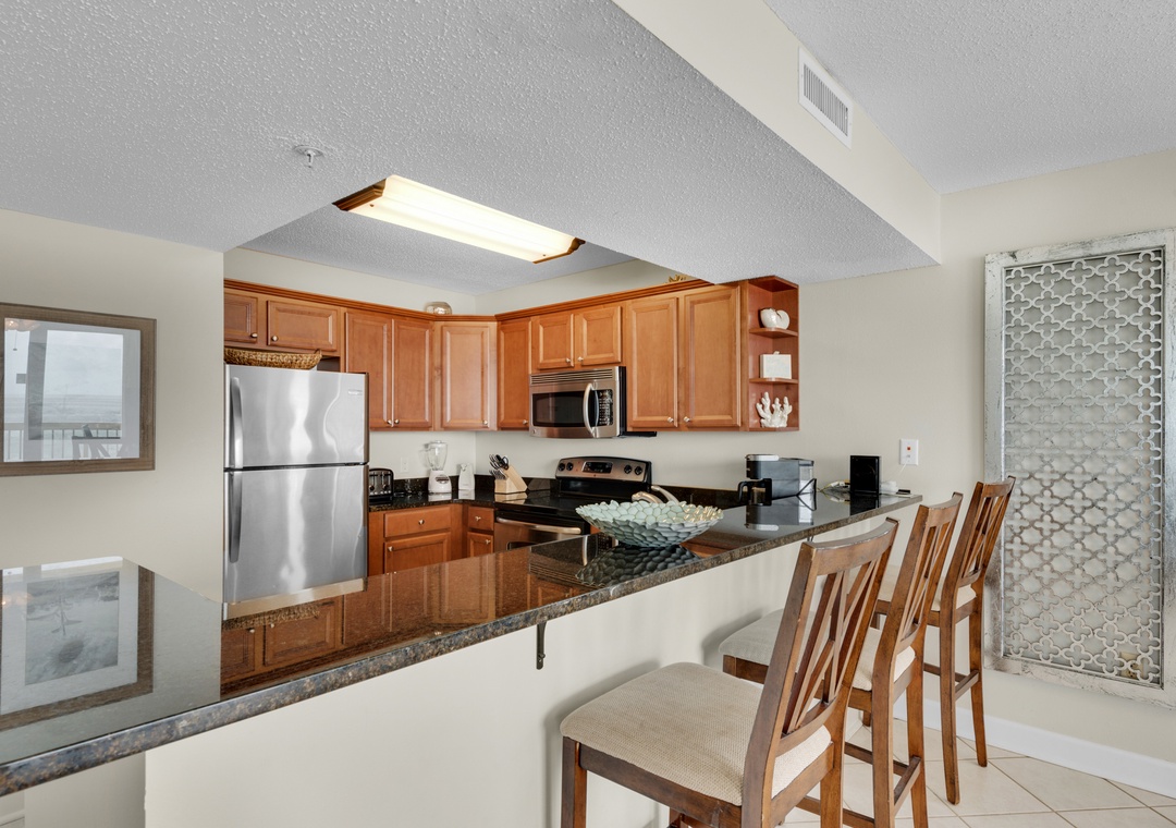 Condo was exactly as described and loved the corner view! Kitchen was well stocked with necessary supplies to make all meals. Beach and ocean were great and kids loved the pools! We will definitely be back!- Reviewed On: 4/18/2021